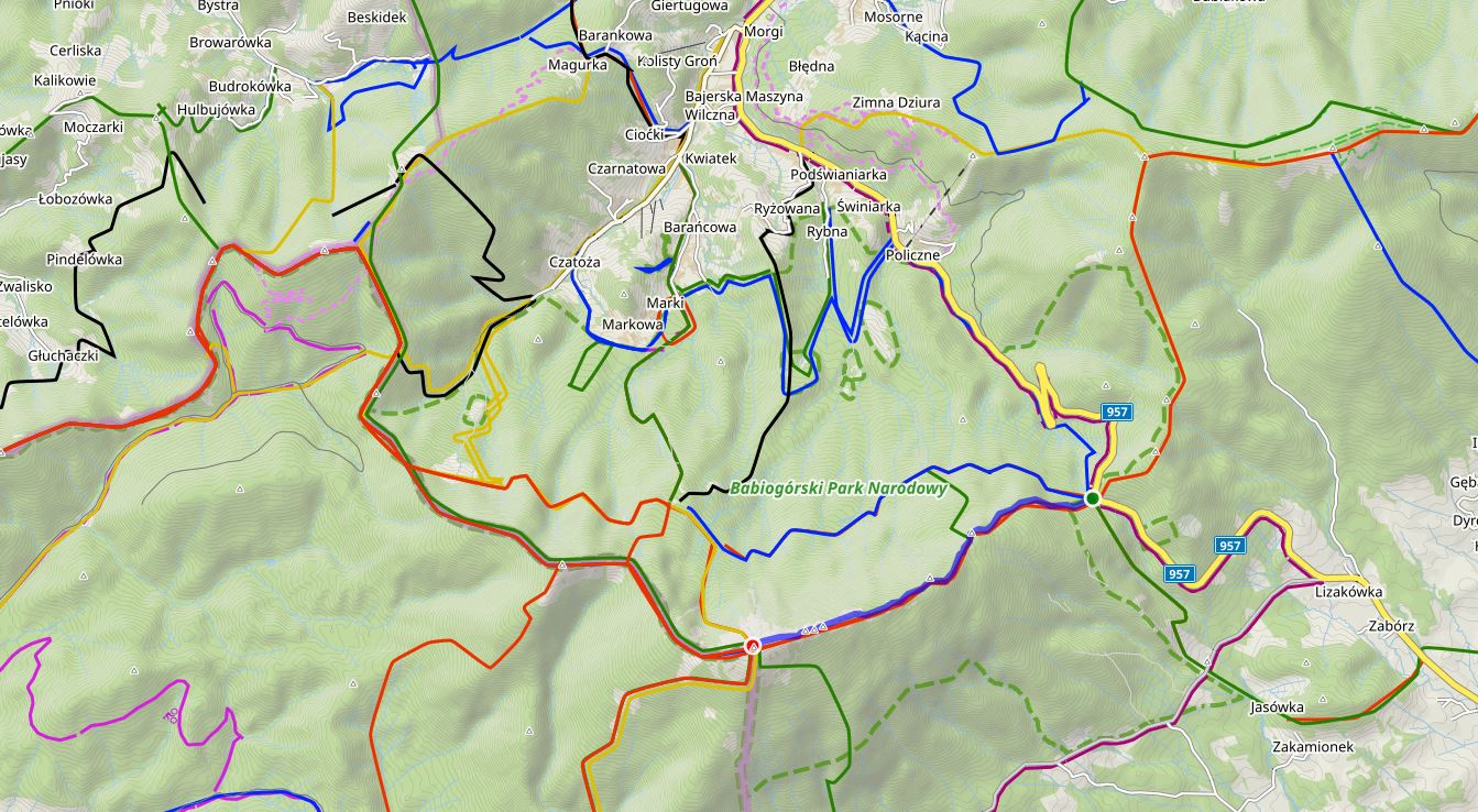 When I try to concentrate on the terrain and other details, such a view is very distracting. This is particularly annoying when I want to see e.g. my last three tracks on the map. They get mixed up with the colored hiking trails and bike routes.
