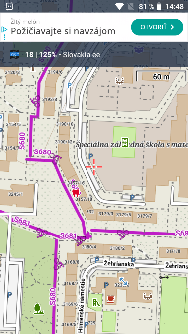 Chcel by som informovať, že v Lomape offline nevidno mnoho S-kových cyklocestičiek, napríklad S680, S681, S384. V Lomape online ich vidno, ale bez označenia čísla. V Paws OSM offline mape ich vidno aj s označením čísla cyklocesty. Priložím sem obrázky. Chcel by som vás požiadať, či by bolo možné ich takto kompletne zobrazovať aj v Lomapách online a offline. Pri plánovaní cyklotrasy sa snažím uprednostňovať cyklotrasy, v podstate je to pre cyklistov aj povinnosť, ak súbežná cyklocesta existuje. Vďaka za odpoveď.