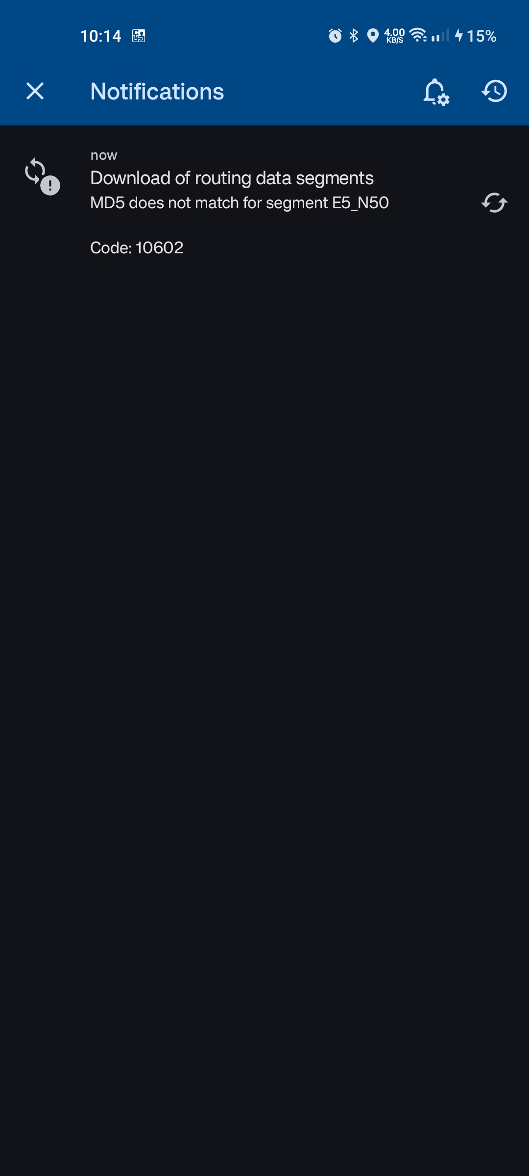 Routing segment E5_N50: MD5 does not match