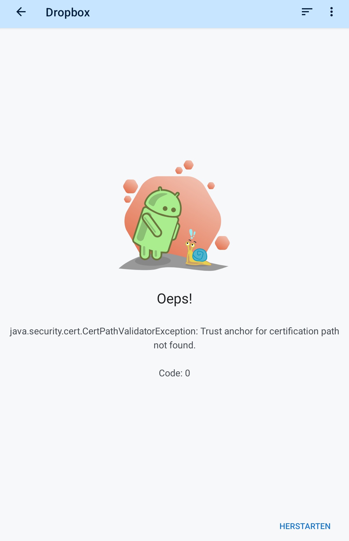 I looked into it a bit and it appears that Dropbox has updated its API servers. Here is more info: https://dropbox.tech/developers/api-server-certificate-changes. So it appears Locus's SDKs need to be updated, so that the app can access the Dropbox API.