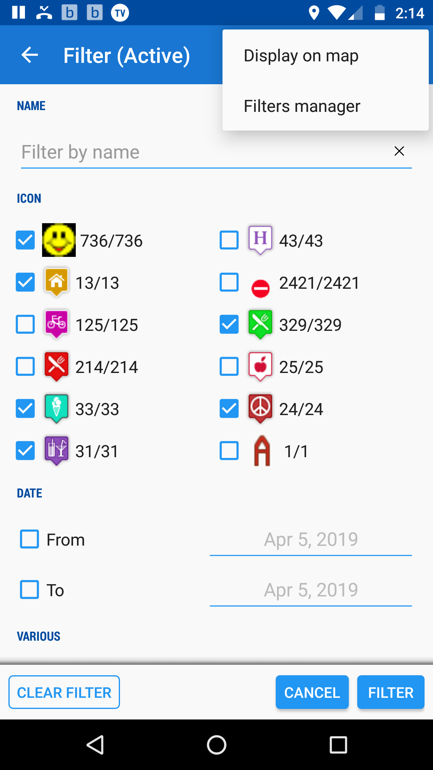 - choose which icons to filter