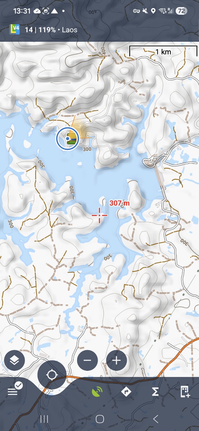 Incorrect border of a reservoir in Laos, in Offline map, Hike