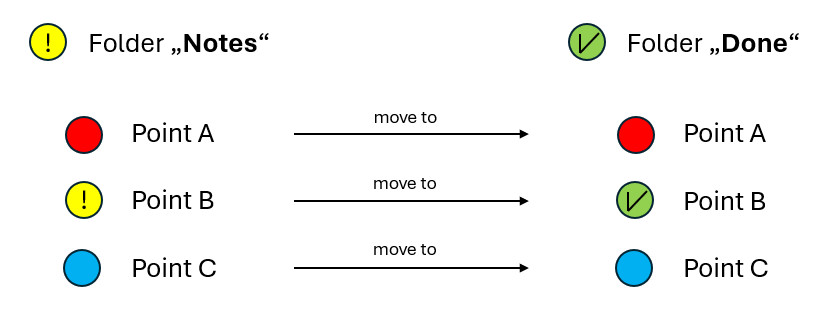 I would like the moved point to automatically receive the green icon of the "done" folder.