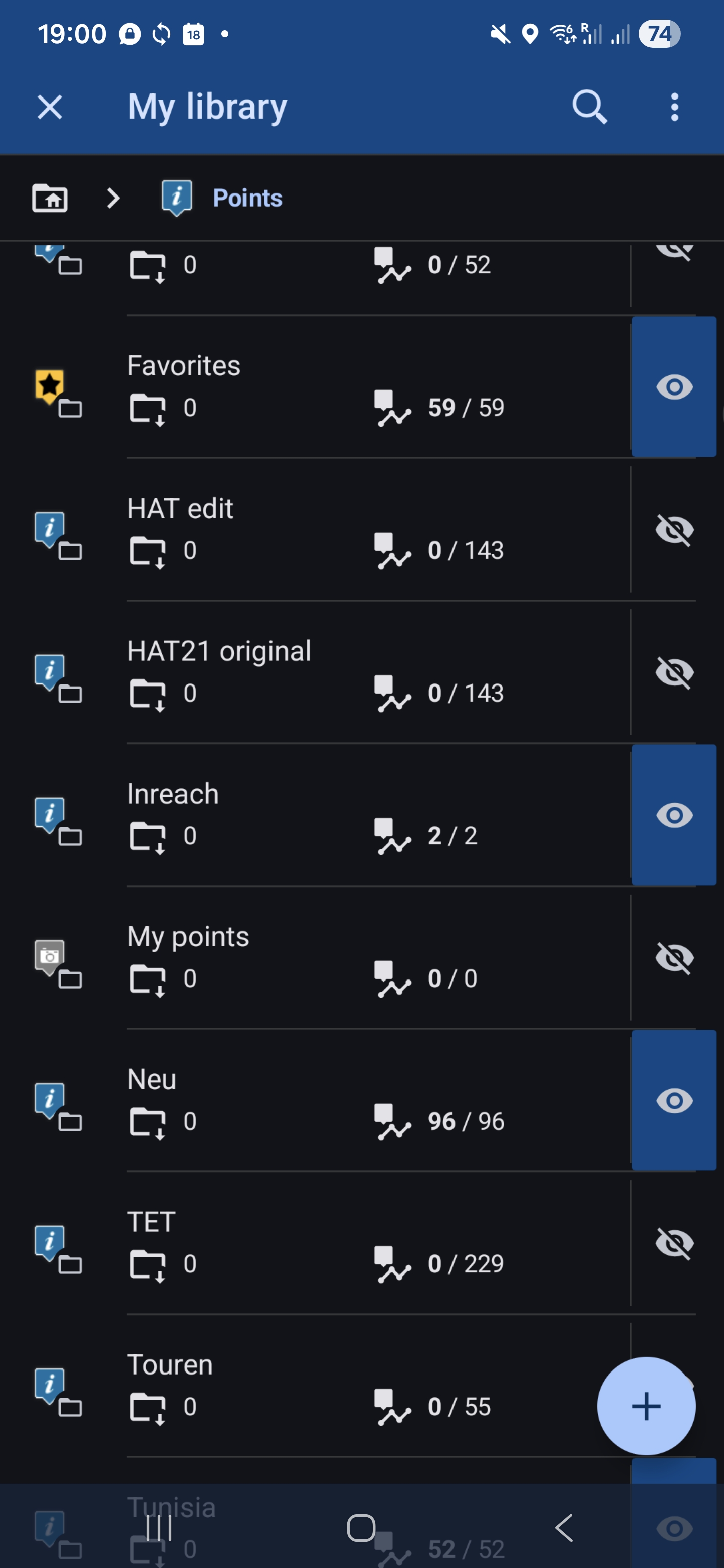 I have a large collection of tracks and points, as well as a Gold Premium Plan. Previously, the entire library was visible both in the app (Android) and on the web.