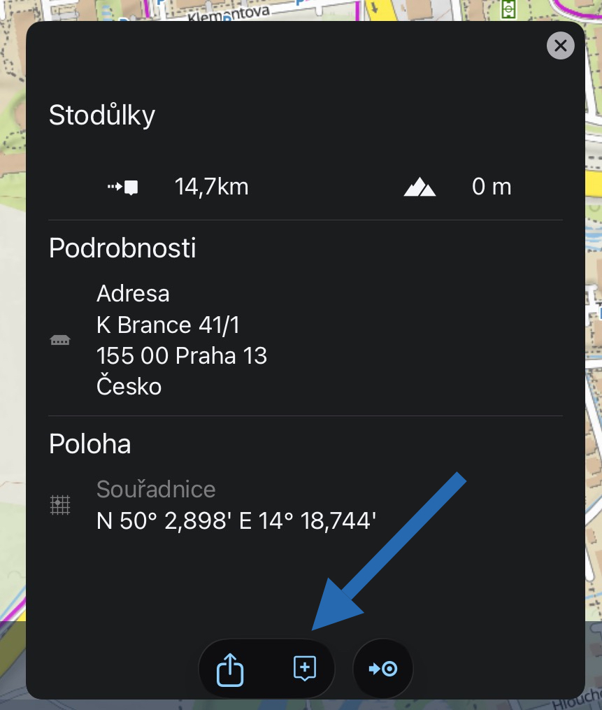Pokud vyhledám nějaké místo a chci ho přidat jako nový bod tlačítko pro vytvoření nového bodu nefunguje viz screenshot.