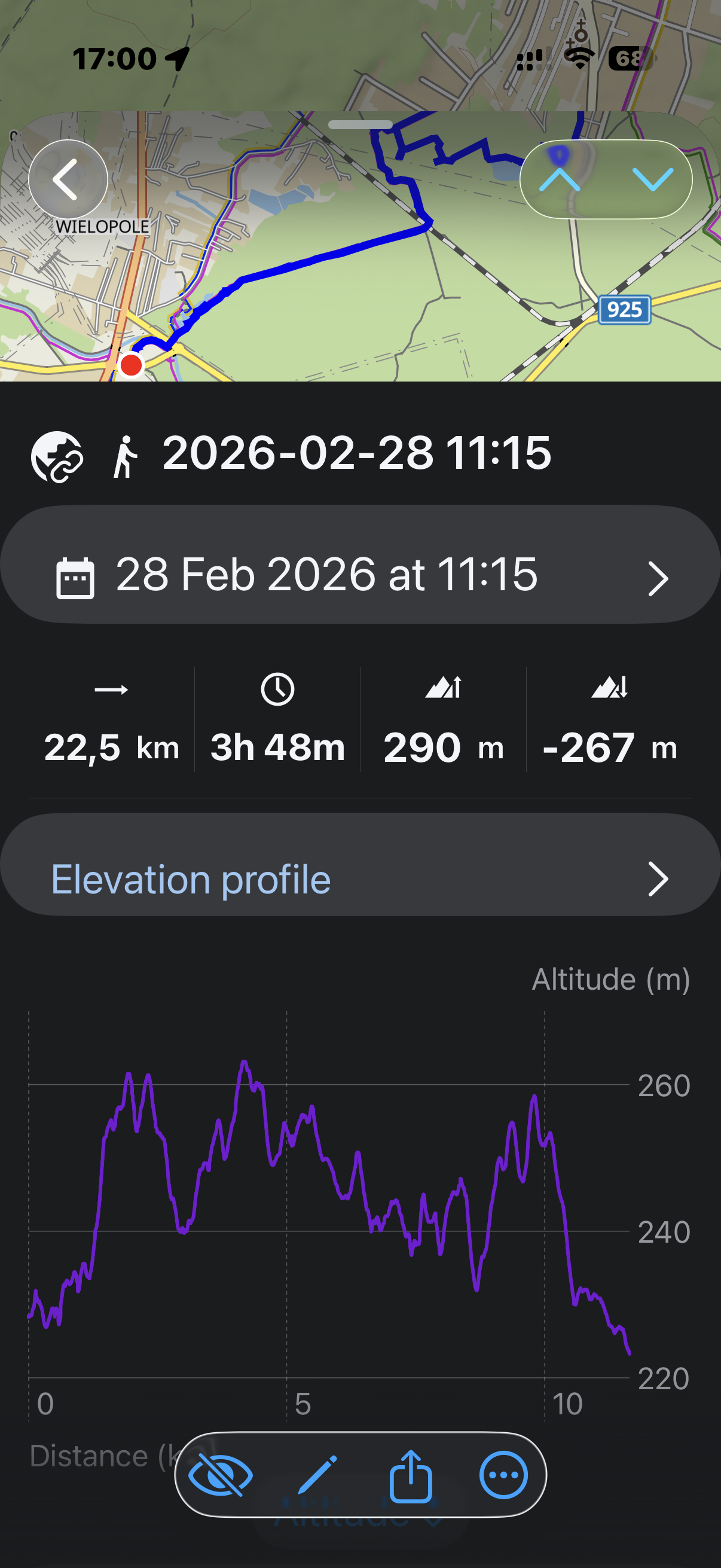 Ilość faktyczna to ok 16 , wg wykresy a zmierzona 22. Km ?