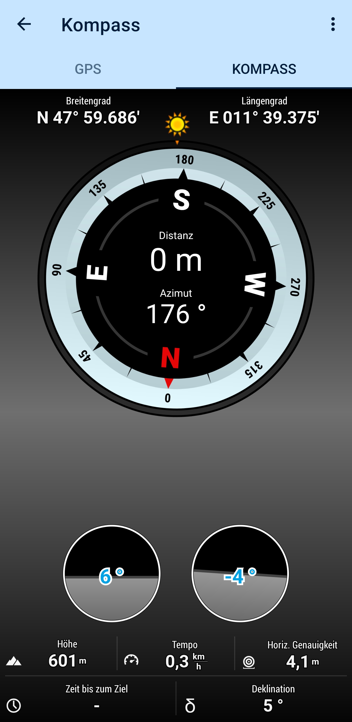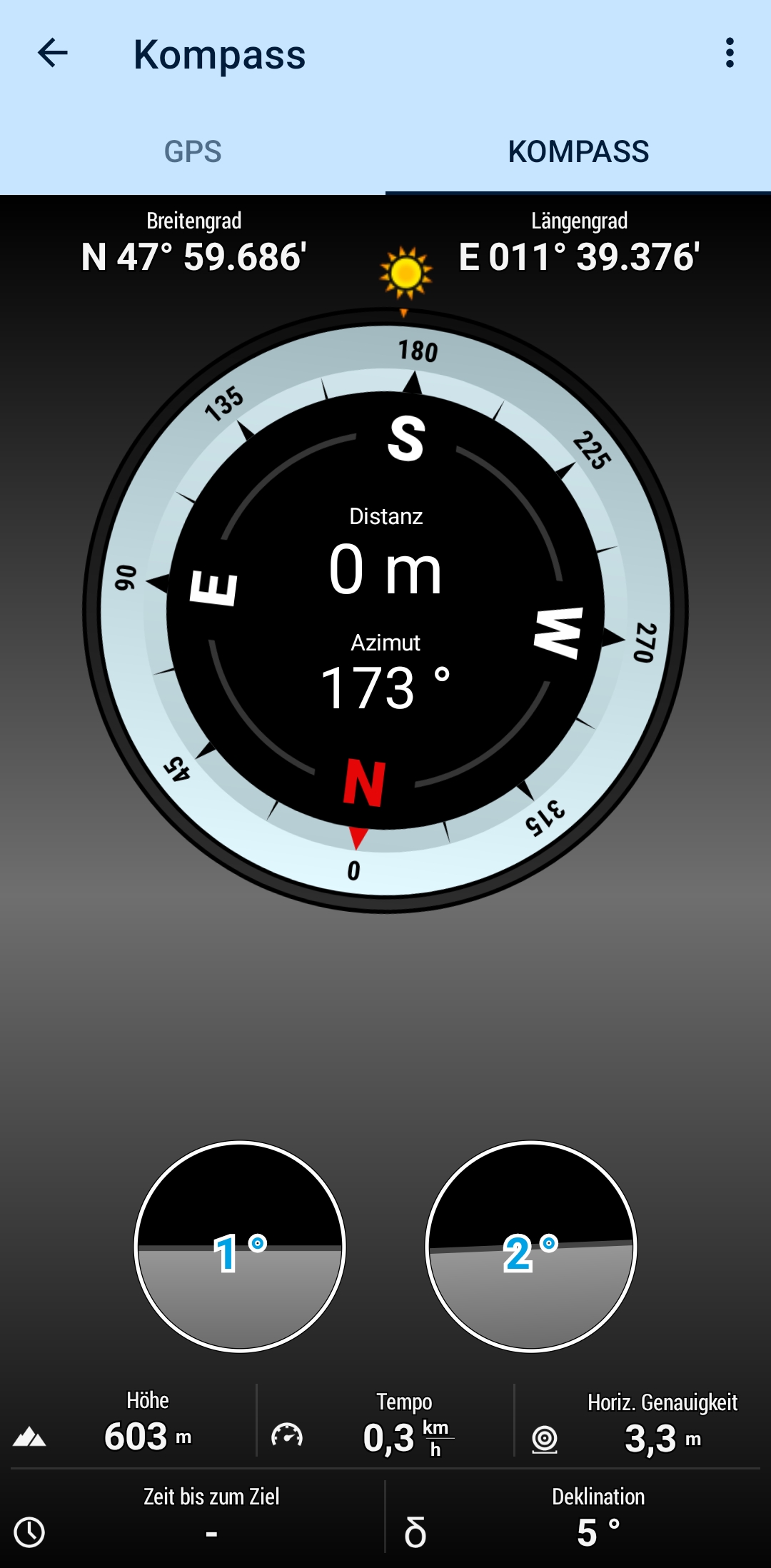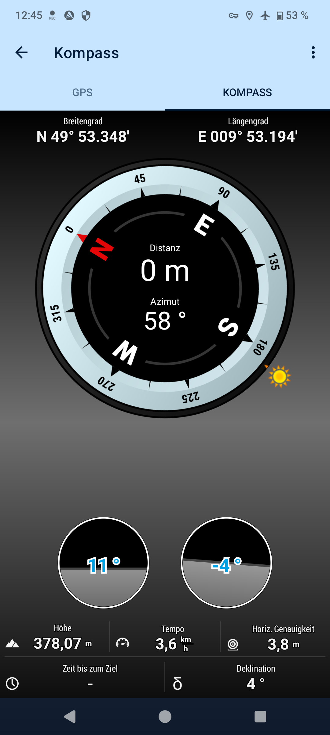 Wenn ich die Kompassanzeige aufrufe, funktioniert der Kompass einwandfrei.