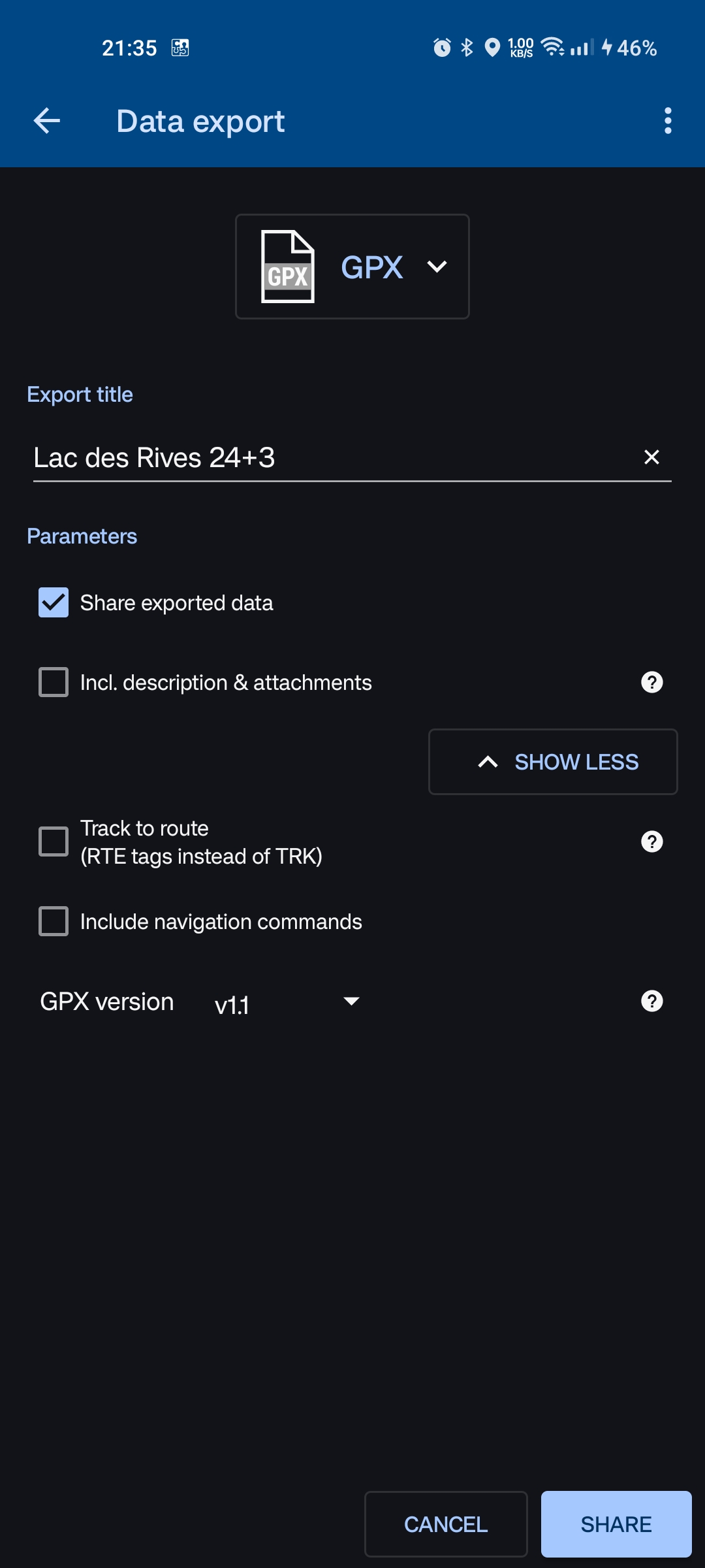 Yes, "Share exported file" ignores the default export path and offers direct sharing of the file or opening it in another app like e.g. Garmin Connect.