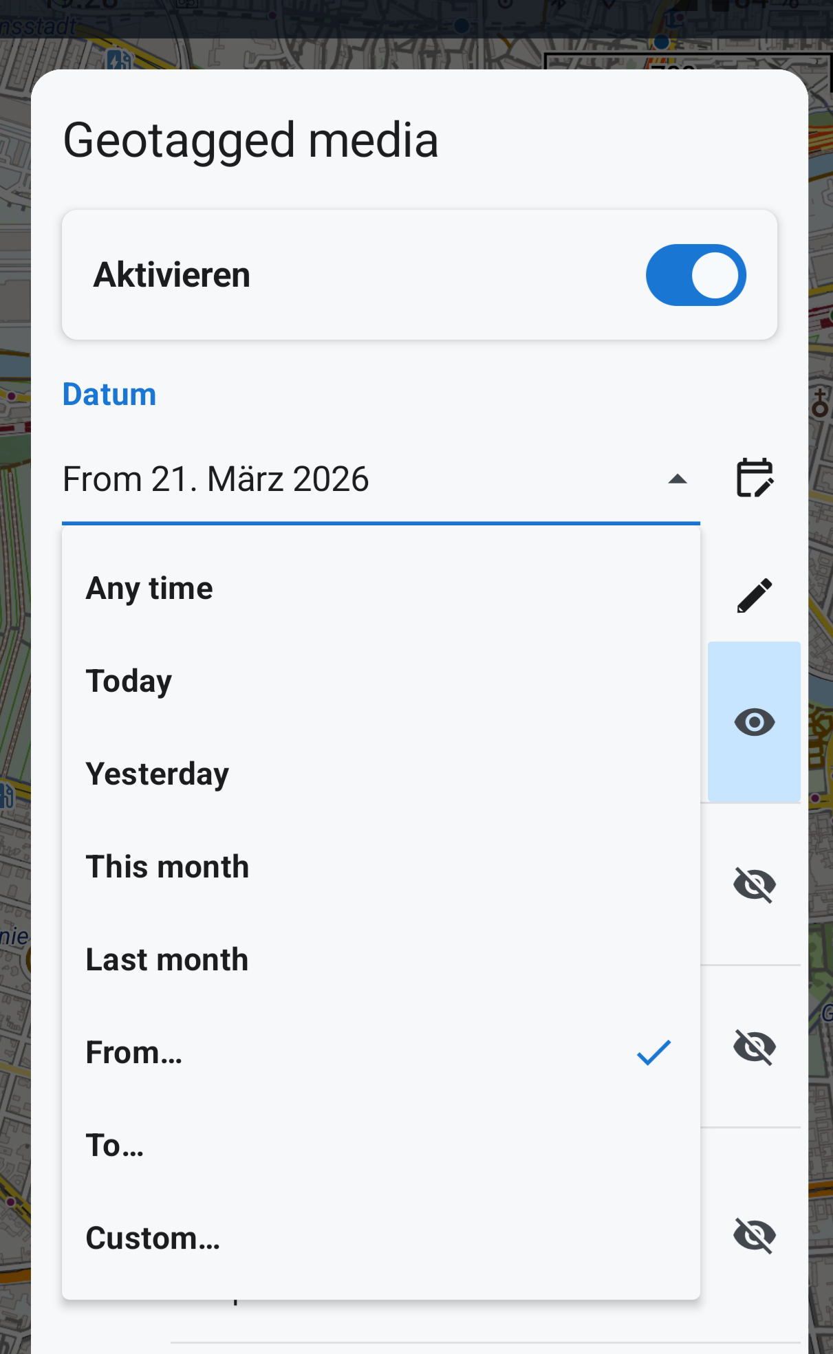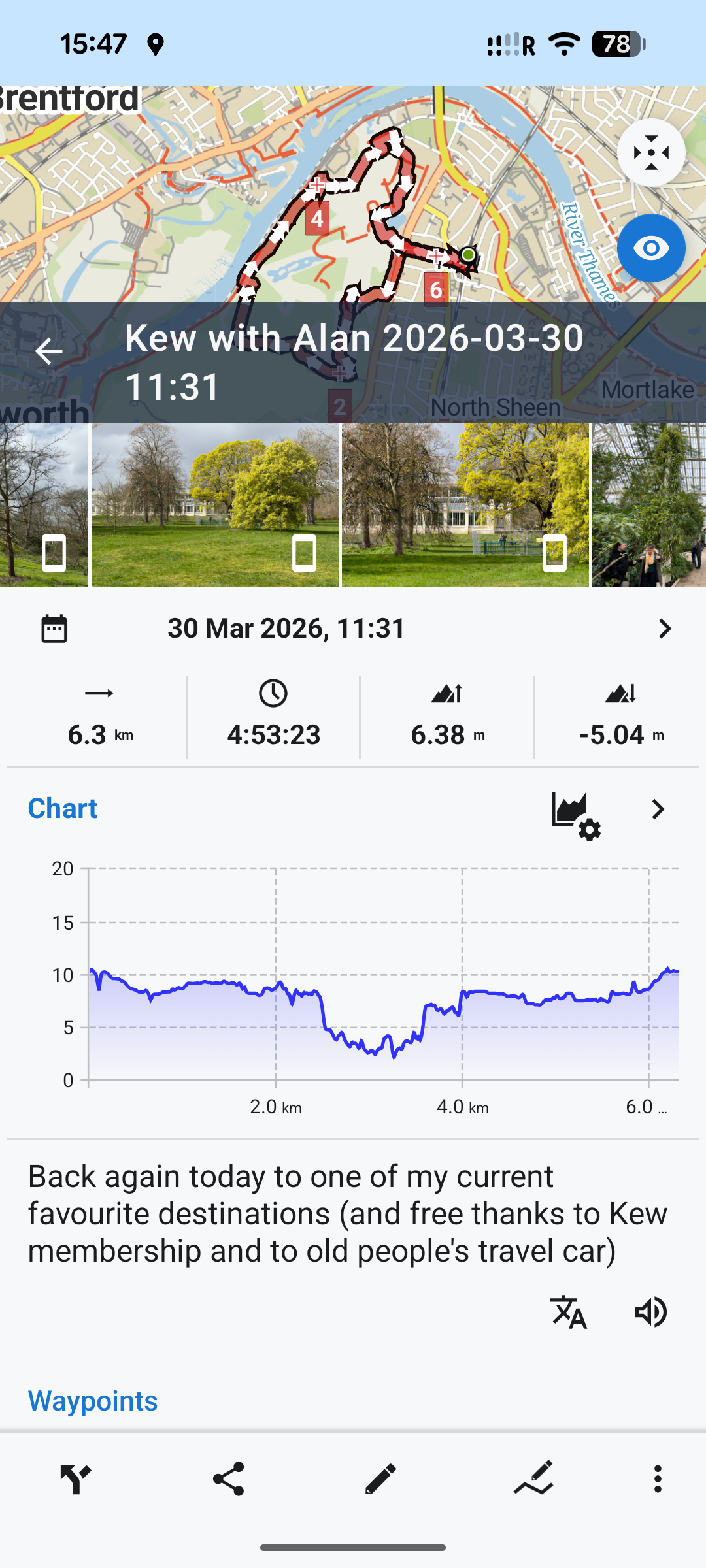 The problem with the "Geotagged media" option is that it shows all the geotagged photos you've ever taken on your map and it soon gets completely clogged up. So I turned it off. What I was hoping for was that it would be possible to see the exact spots where the thumbnail photos attached to a track were taken (IE the ones which just appeared in the latest update) (see screenshot). But it's not important - it's very useful to see the photos you took along the walk, even if you can't tell exactly where they were taken. Perhaps that function could be added later. But overall I think it's a great update. I really like it.