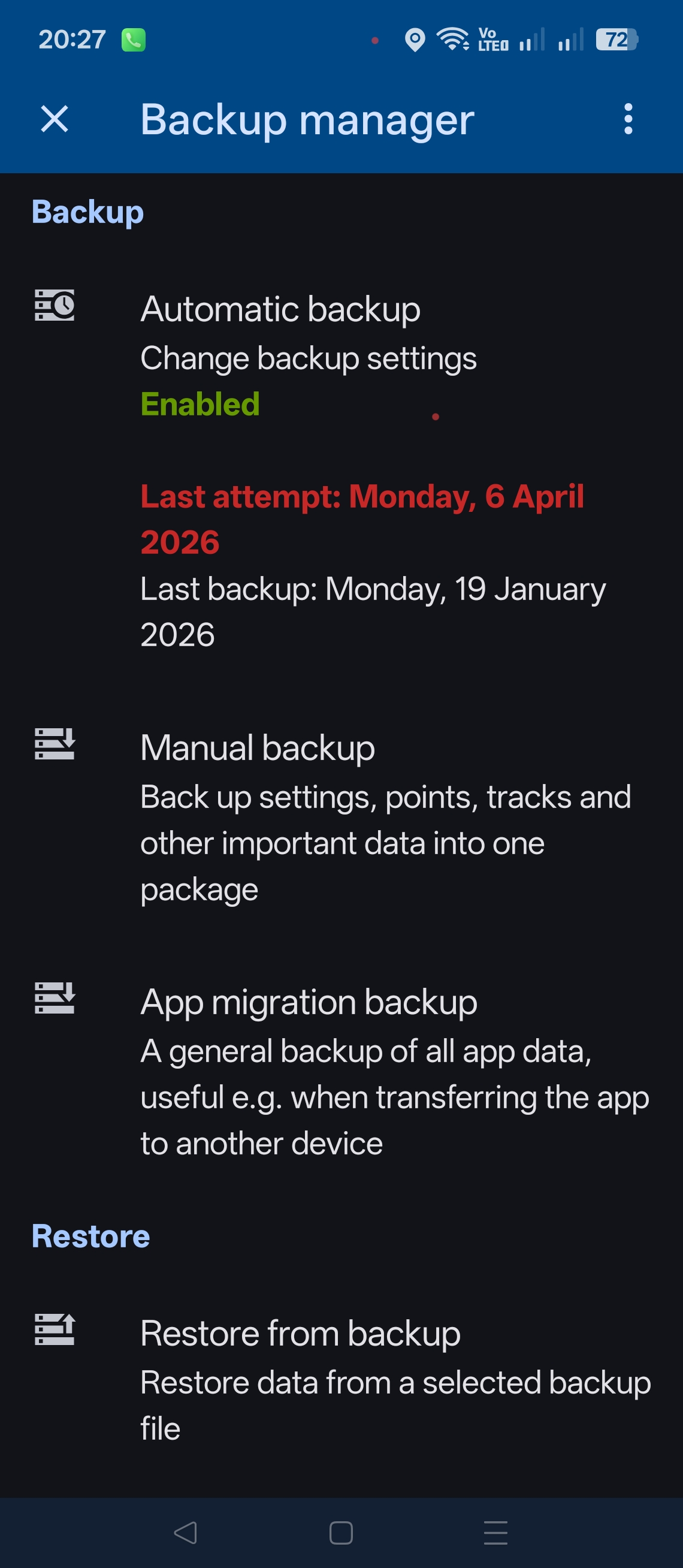 Another problem is related to backups. Manual backup to custom Downloads folder works without problems. Automatic backups to the same folder fail.