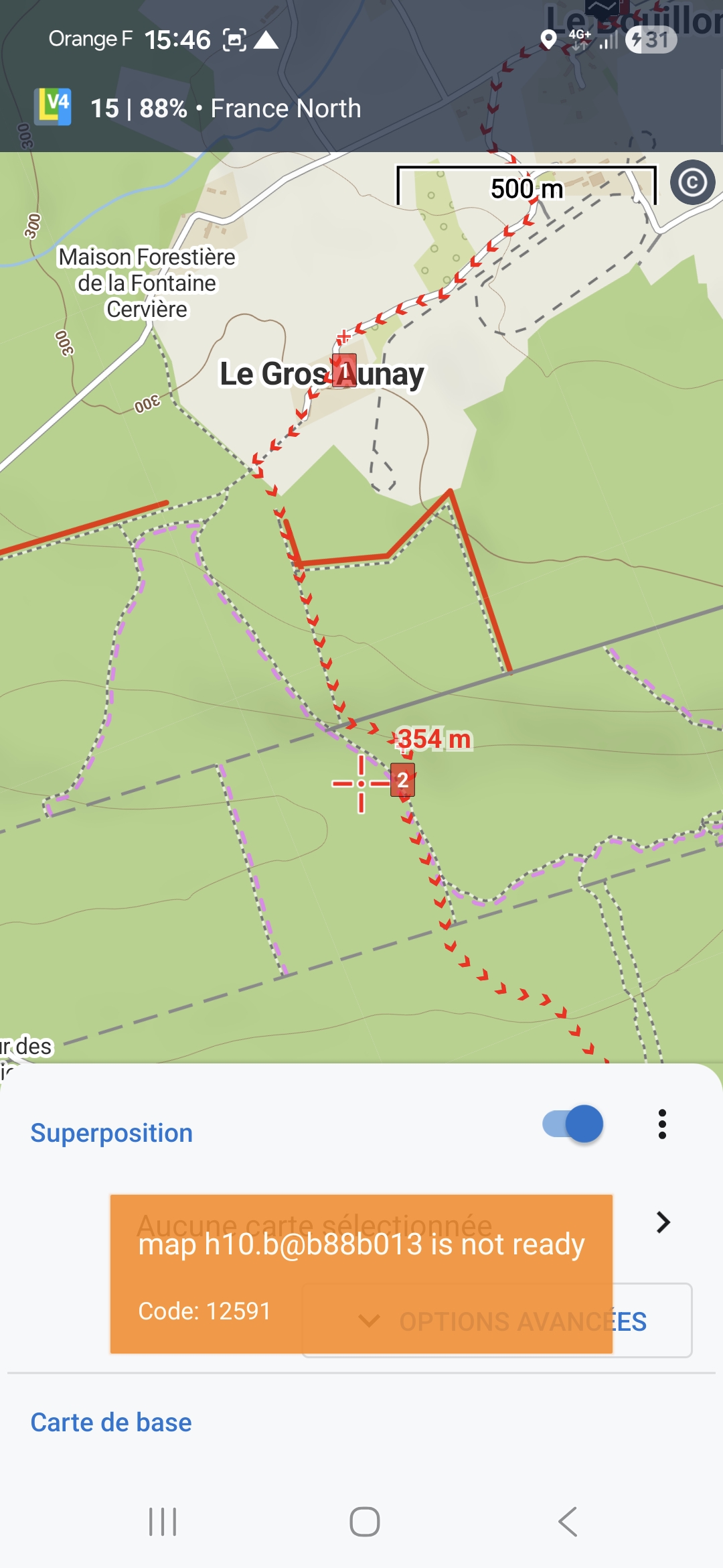 I have very often problem when I want to display it on map overlays. To see the screencopy of the error. This hapen in both IGN maps online and offline.