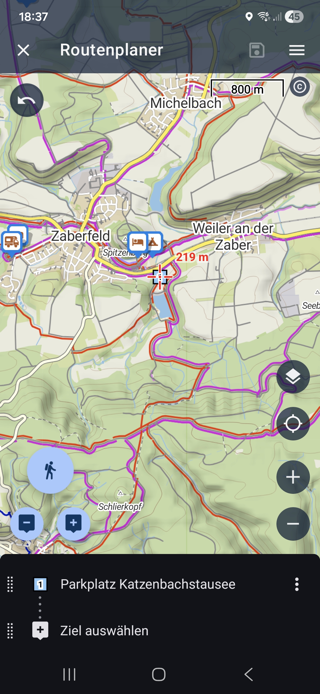 Bisher konnte ich einen Startpunkt und danach mehrere Zwischenstationen auswählen. Jetzt gibt es nur noch Start und Ziel. Unter dem Wandersymbol steht "-" und "+". Wenn ich auf "+"drücke, wird willkürlich ein neues Ziel gesetzt. Was läuft da falsch?