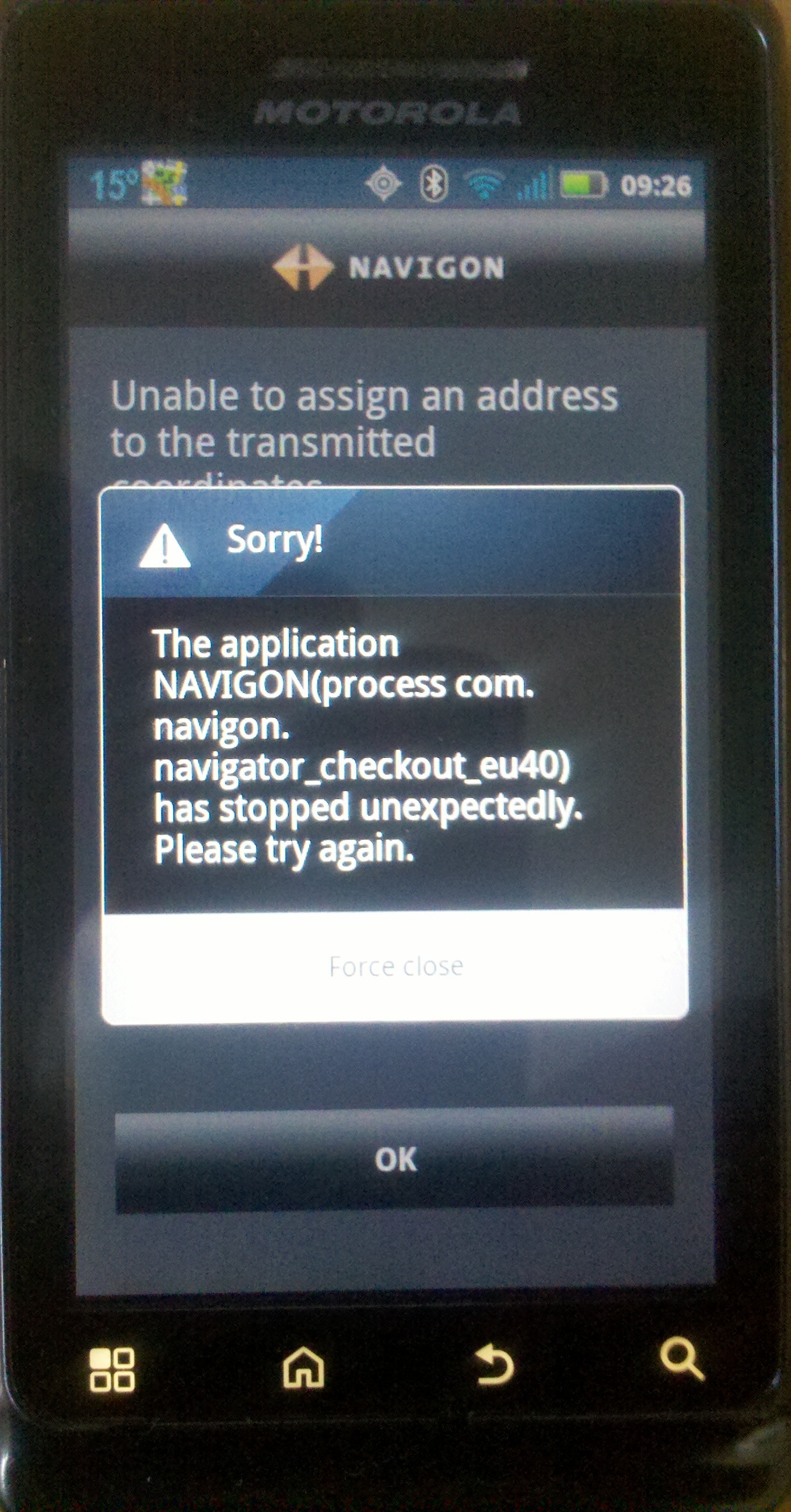 Pri volani Navigonu dojde k chybe a aplikace nedostane od Locusu cil cesty asi ve spravnem formatu.