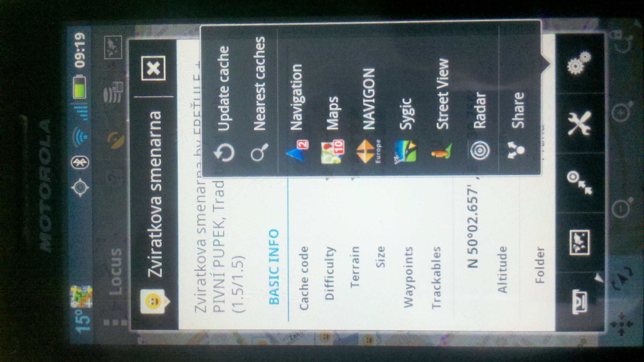 Na ceskem foru je zadost o podporu jinych externich offline navigaci. Zatim locus umi volat google navigaci. Pritom je mozne volat pomoci intentu BeOnRoad a Sygic. Coz jsou dve offline navigace. Locus by si mohl zkontrolovat, jestli je aplikace nainstalovana. Pokud ano, pridal by do menu moznost navigace.
