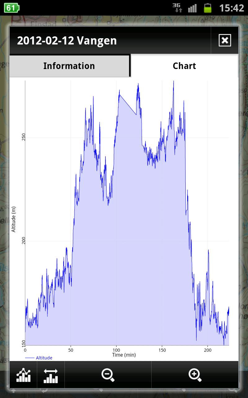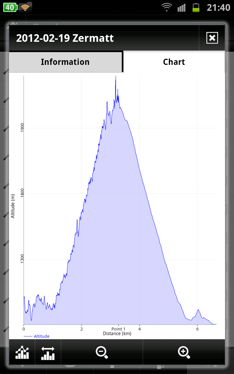 in this case, result is that (also because seems like Chart library I use is not so much actively developed now) I`m trying to understand this chart library. So zoom +/- buttons are now correctly working. You can also tap on chart do display values and then tap on bottom map button, to move on map on specific place. I`ll also add some indication of closest point on chart to current location and yes .. text sizes :)