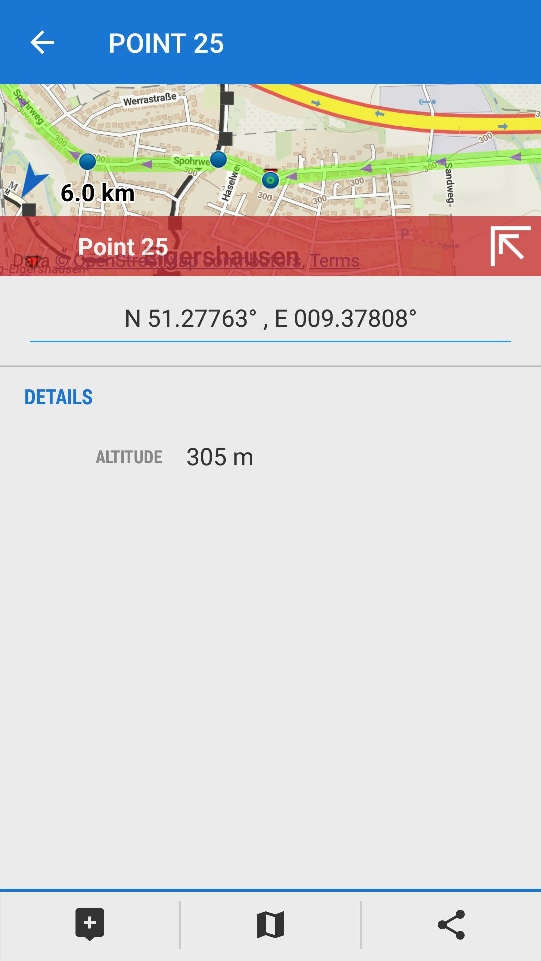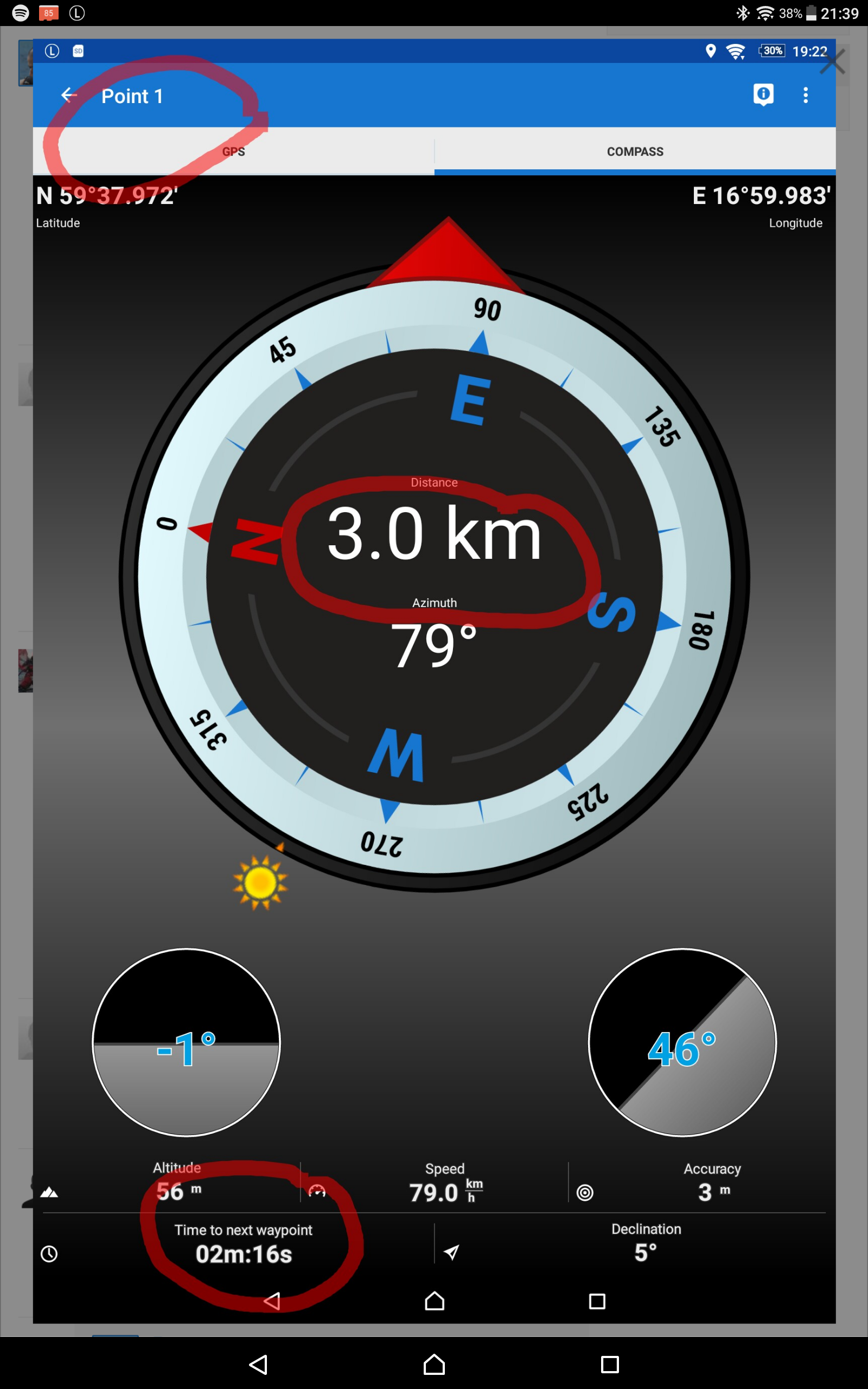When I tap on Point x a new Information Dialog opens with Details (only) Altitude, and many many white in that dialog where easily that information could be set, how far to the target and to the start.