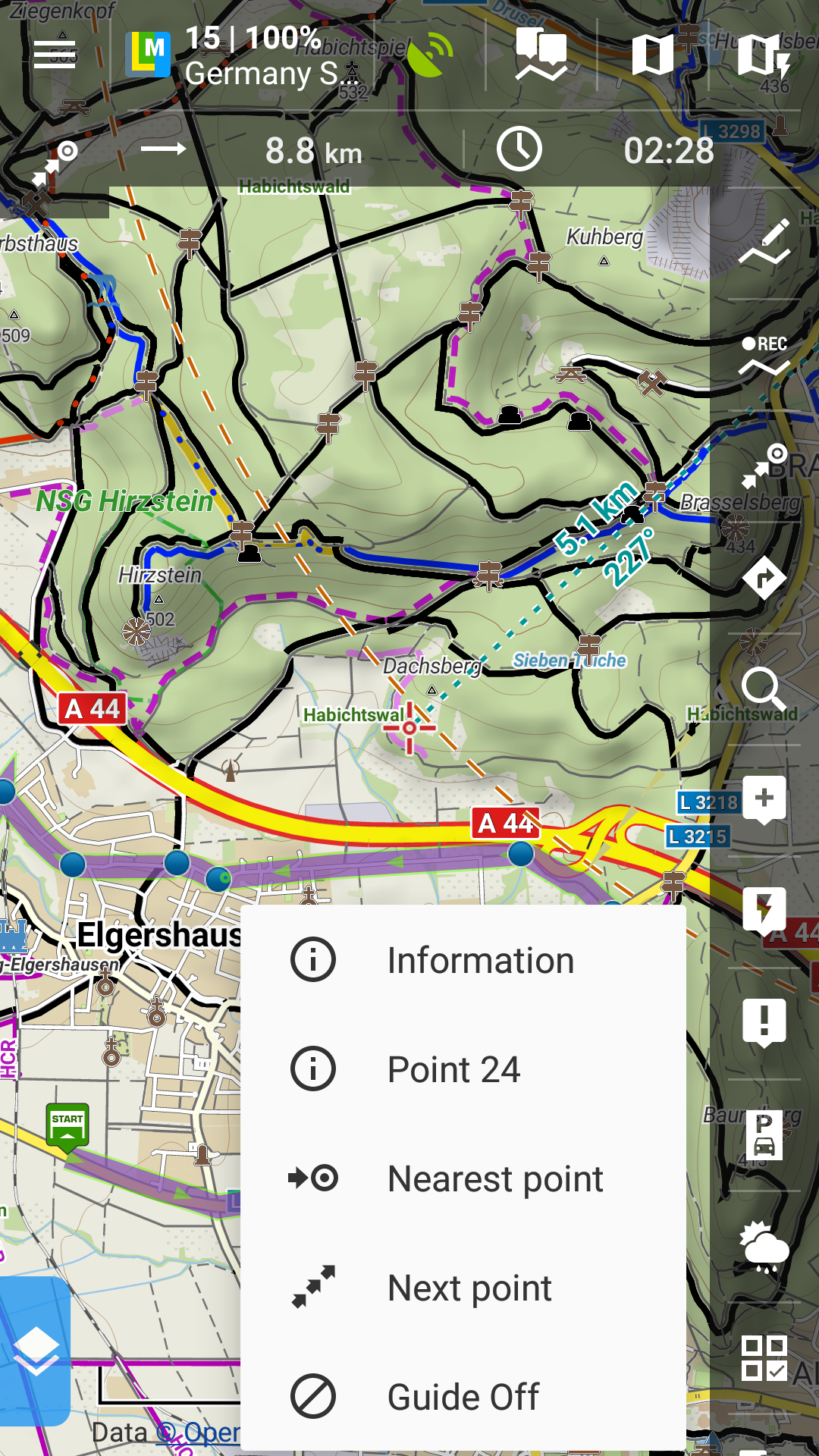 If the same track is not set as guidance the popup shows this information for each point on the track (distance to target and even distance to start).