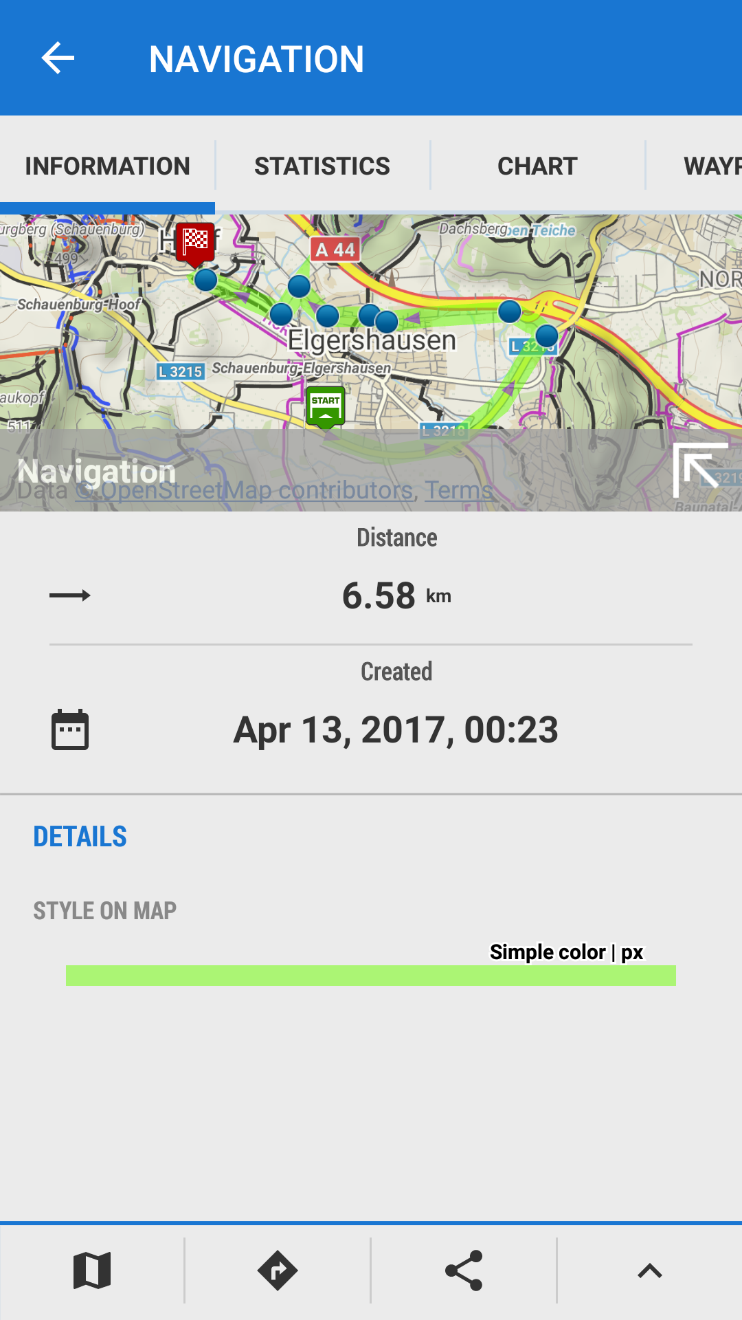 - I tap on this track on the map and on the popup menu I tap on the arrow right, there I tap on "Navigation / Guidance"