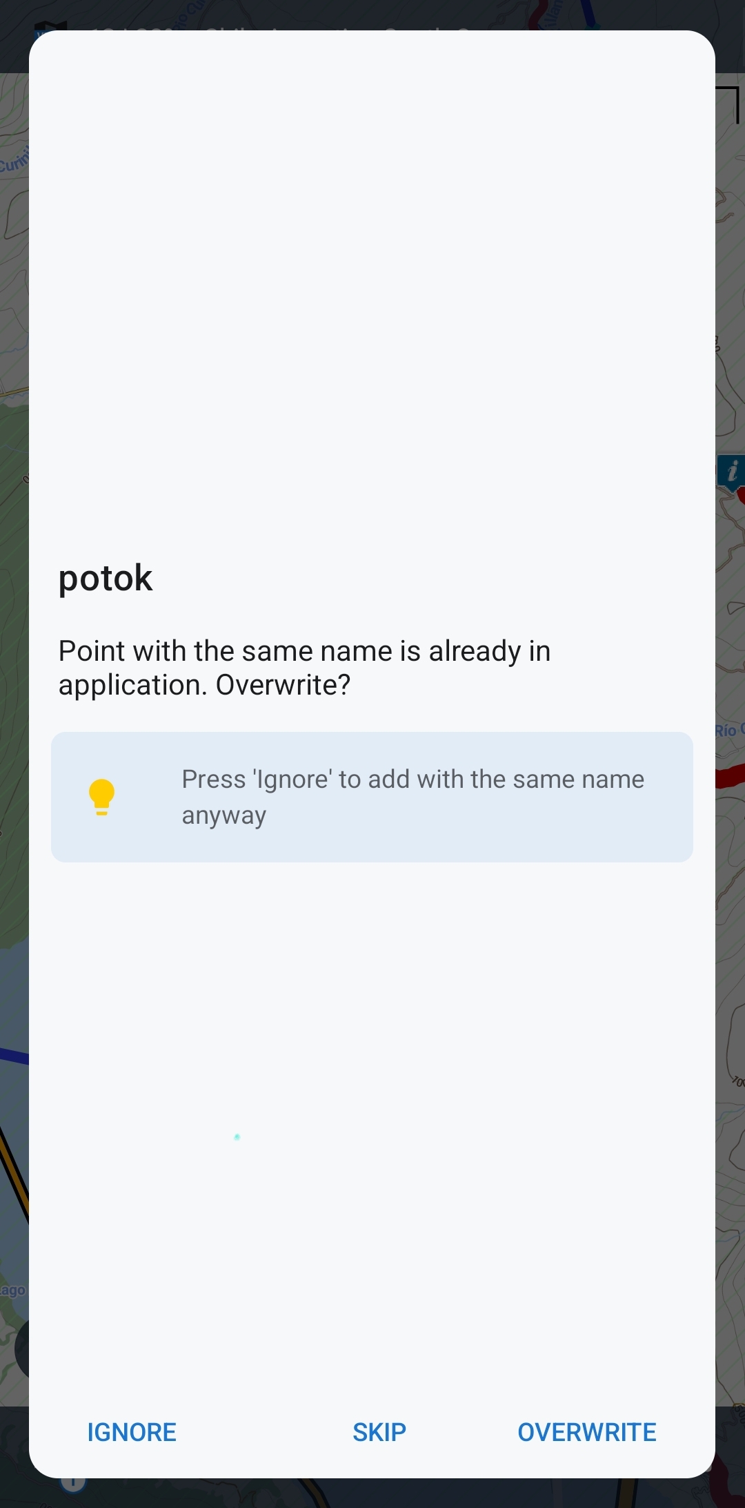 Any time I add a waypoint with the same name of an existing one - as "Water" - Locus asks if I want to overwrite the previous point (!) or ignore the "conflict".
