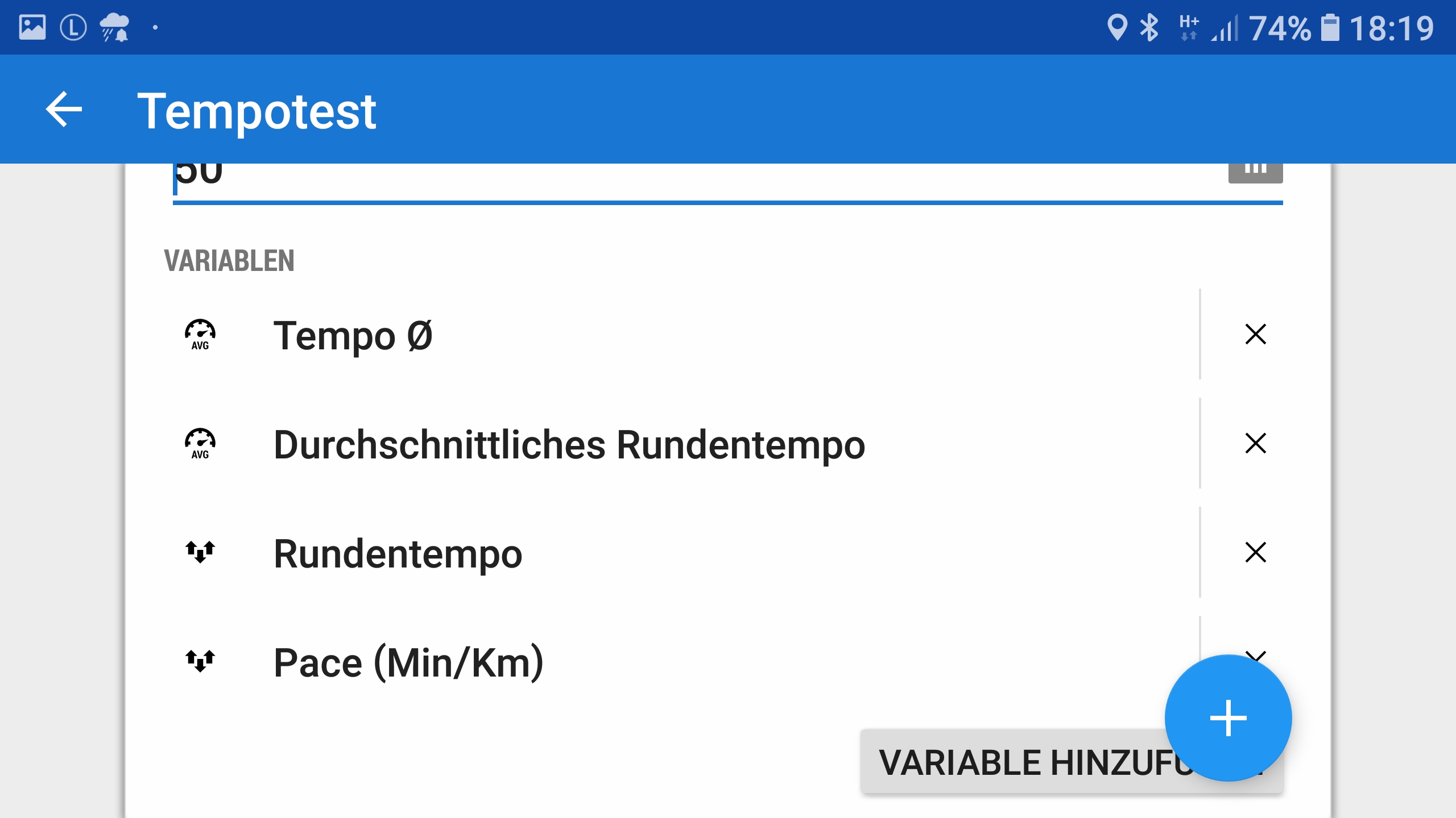 Attached picture: the first two use km/h the last two min/km
