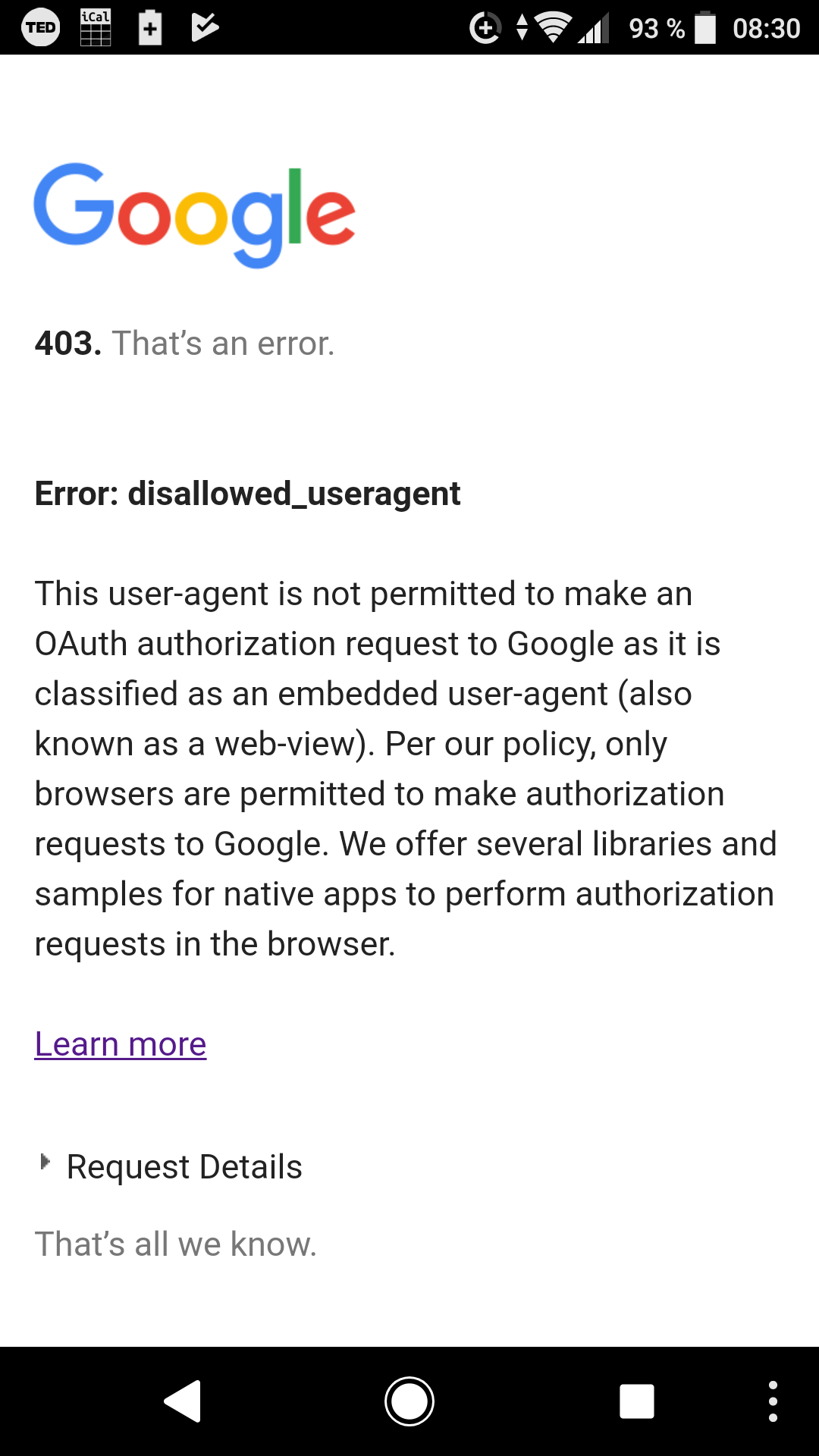 Error 403 disallow_useragent is shown during login to gdrive. So no backup possible for me. Any help?