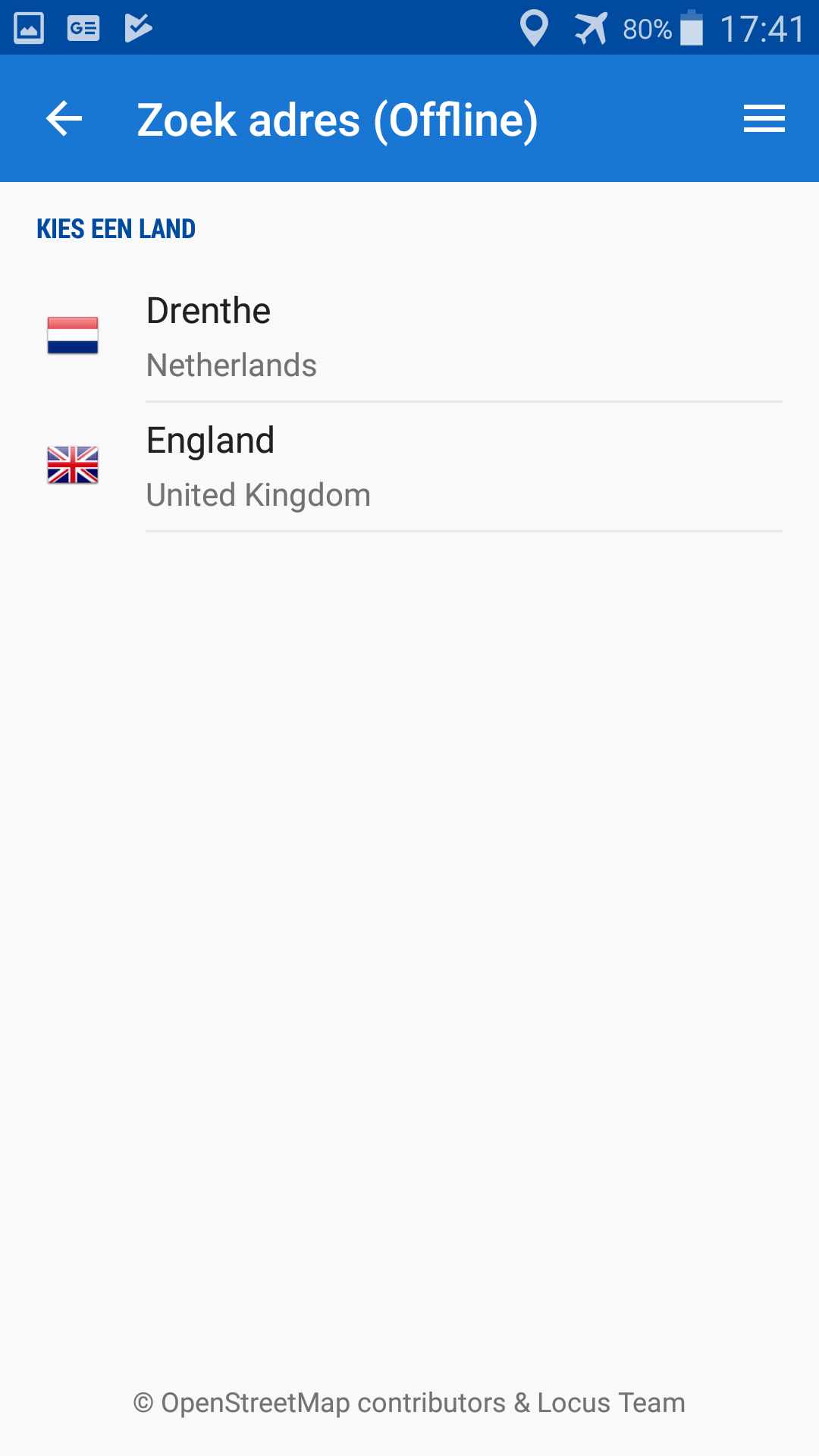when you need to search offline addresses in Netherlands, you need to download LoMap of Netherlands first. Then please select offline mode in the Search options: https://docs.locusmap.eu/doku.php?id=manual:user_guide:functions:search#offline_search. Then select Netherlands and go on with town, street etc.