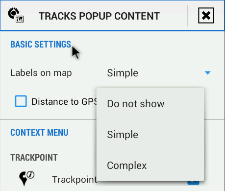Ok, when I change text size, it looks better. Settings related to tracks popup are same - do not show. And I still have label with name of track.