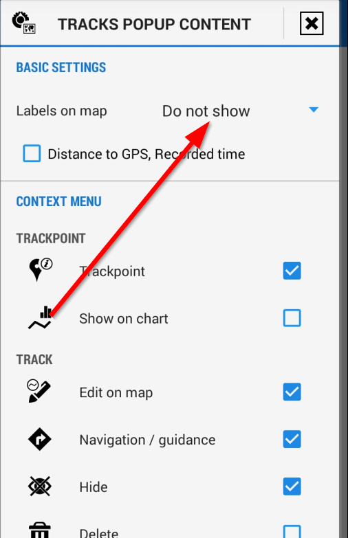 I'm sorry but are you really sure that: Menu > Settings > Map - objects & style >Track popup content > Labels on map has set "Do not show" ? Plese see attached screenshot. Would please also restart Locus app (only to be sure that settings is applied)