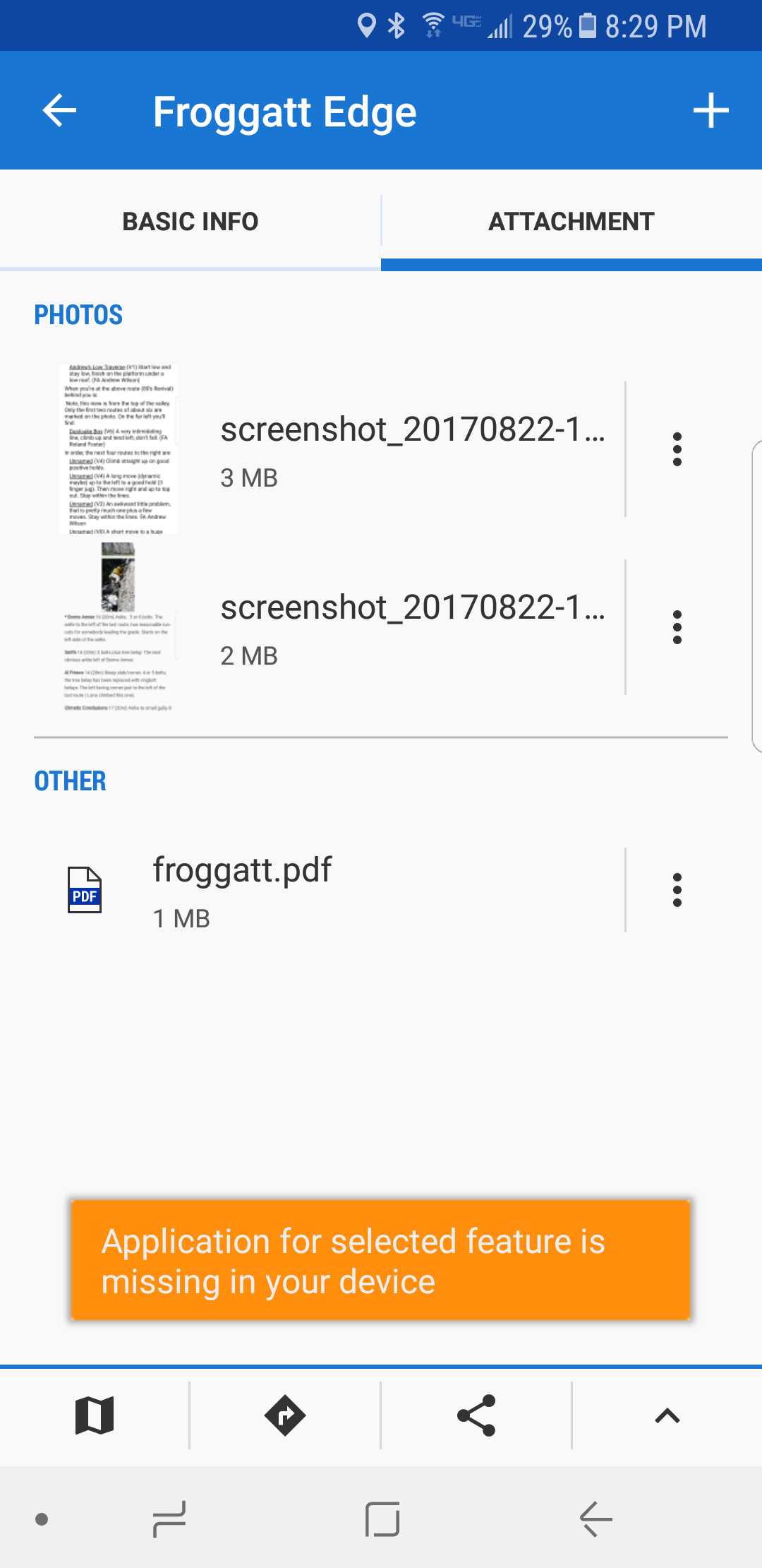 Hi, I love locus maps but recently have been unable to open pdf attachments in a point. I attached the error message that I receive. It used to work and I didn't change anything. I can export the point and send it to someone else and it works. Any idea what's wrong?