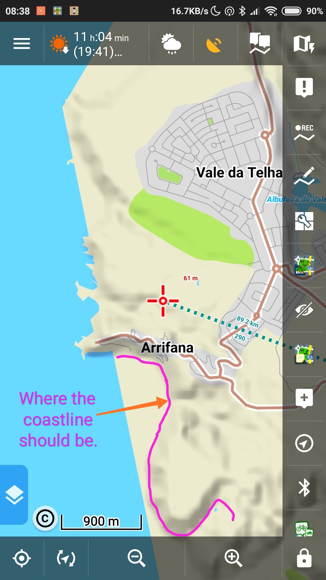 Hi! Since the last 2 or 3 locus updates the coastline /rivers /lakes /etc. representation while using opemandromaps started to show straight lines and not the real contours. This problem doesn't manifest in some areas. When I change the map theme the contours briefly displays correctly, but immediately the straight lines replace the real contours. Is there some configuration that I changed without noticing or is it something that is broken within locus? Any debugging that is recommended?