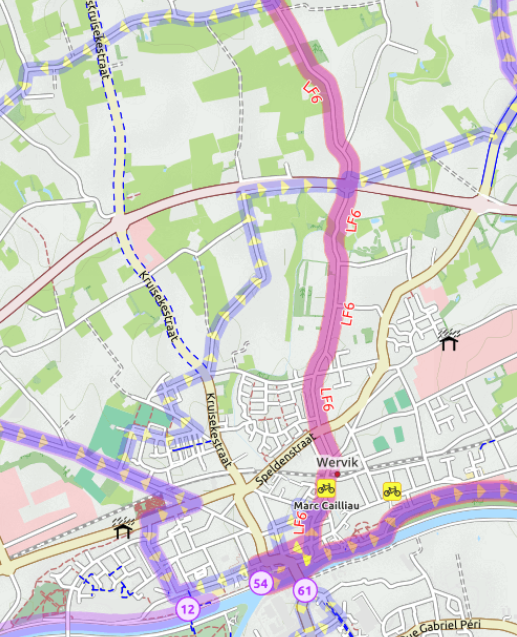 there is an option to switch some other content off (hiking trails, pubs) and leave just cycling paths - they are even more visible then.