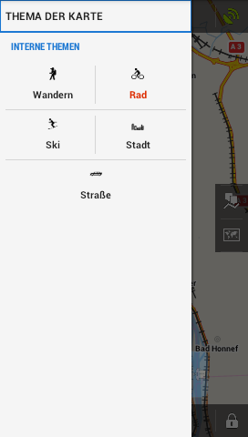 5. Then by coincidence I pushed the left menu in the card (see picture 2) and set the "bycicle"-option (or the others, that does not matter) and the map changed its look (see picture 3).