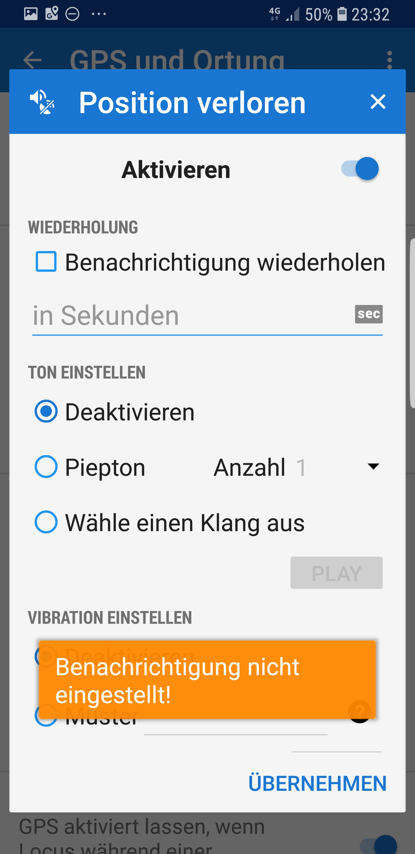 Dieses ging nicht mehr zu deaktivieren ohne Benachrichtigung.