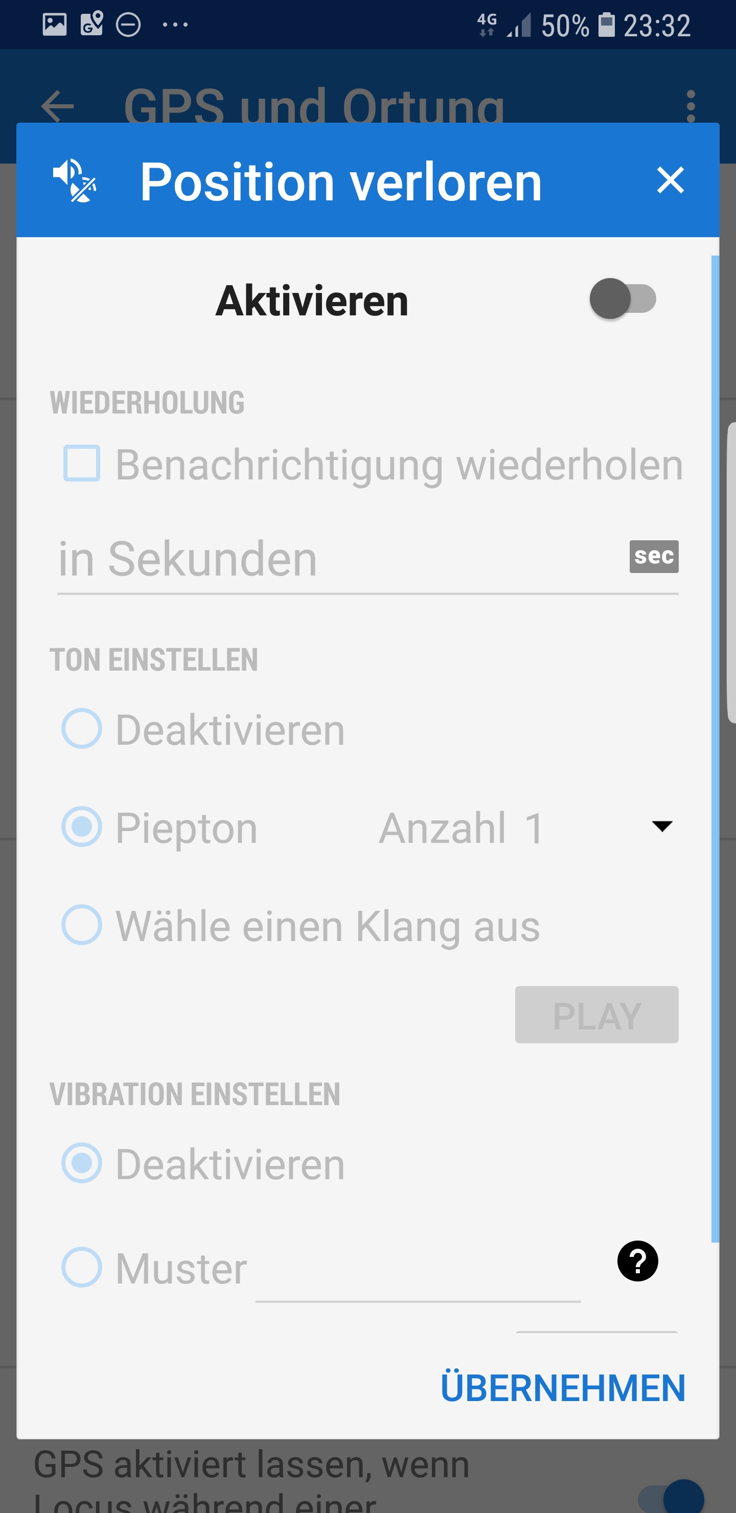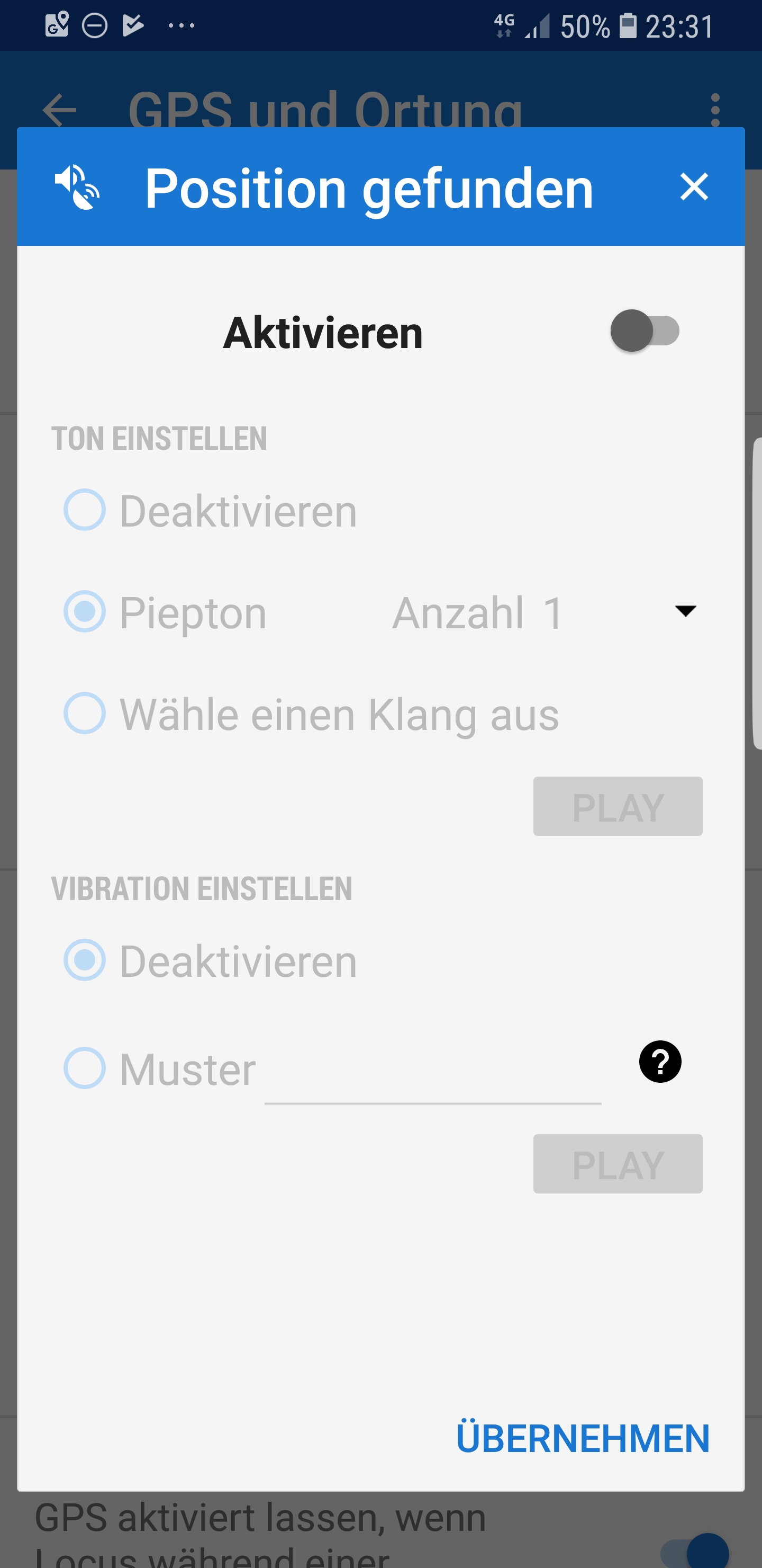 Die Meldung "Zeit bis zum ersten GPS-Fix" lässt sich nicht deaktivieren