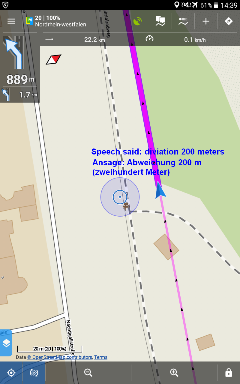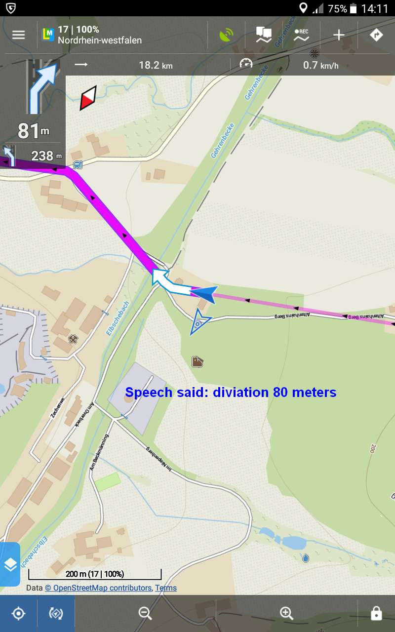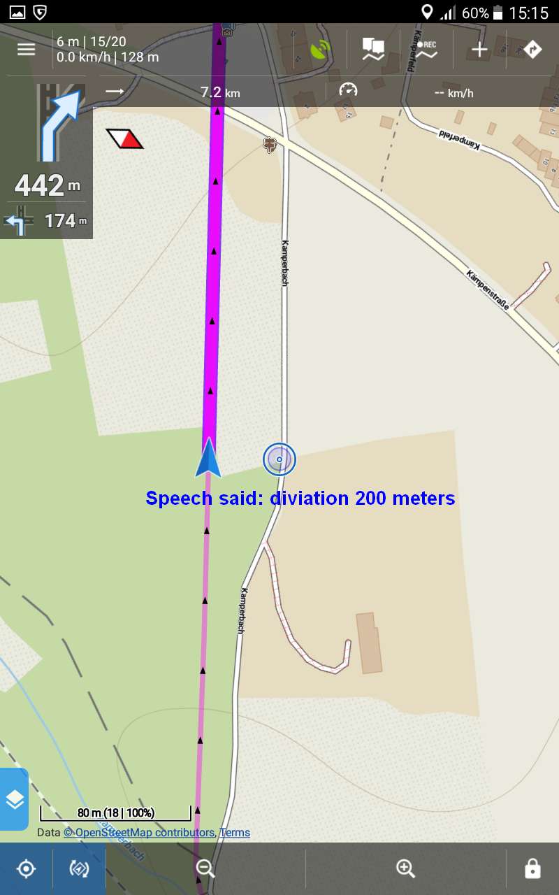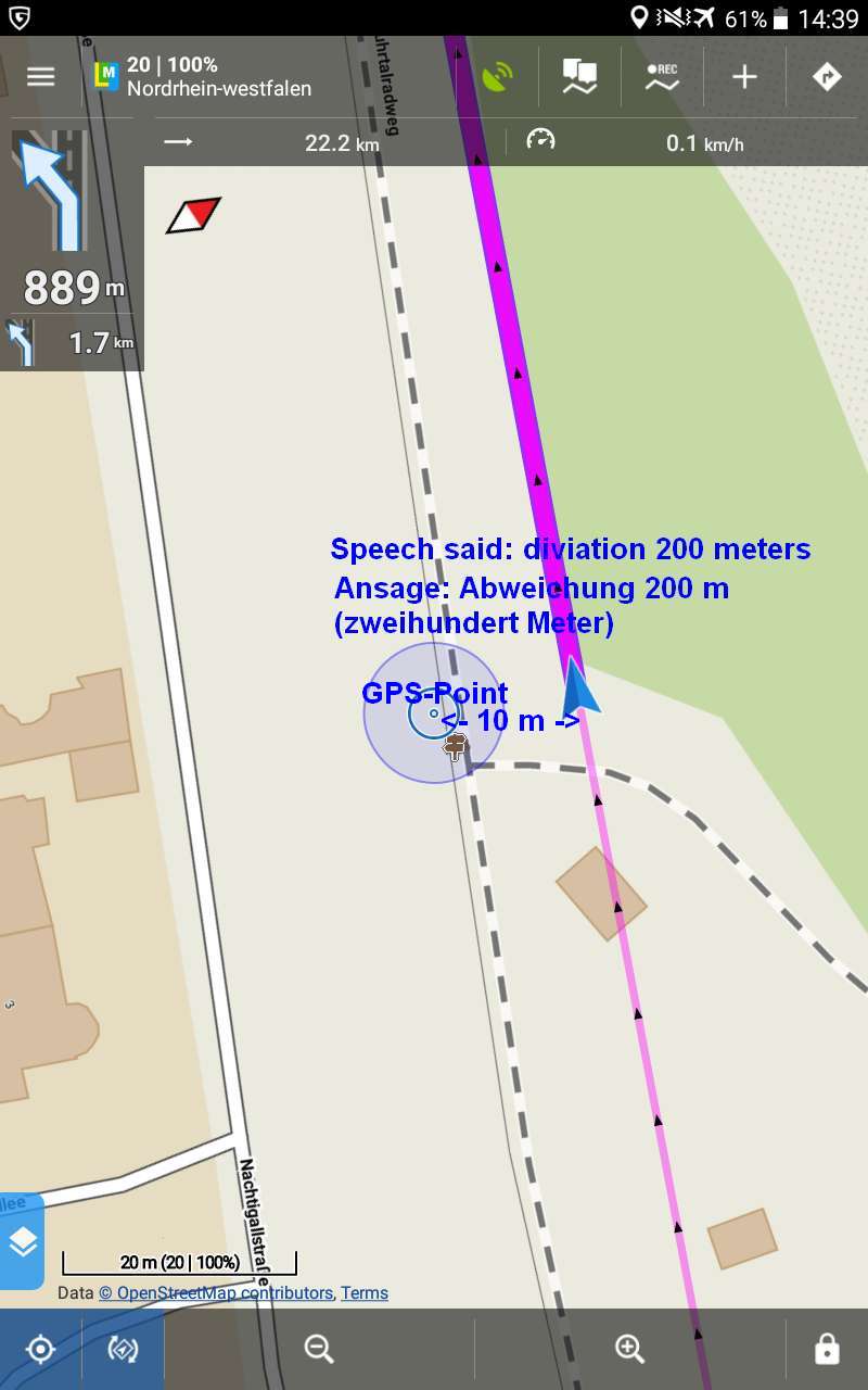 LocusMap Pro > Import a GPS-Track. Navigate along the track. > See the attached file.