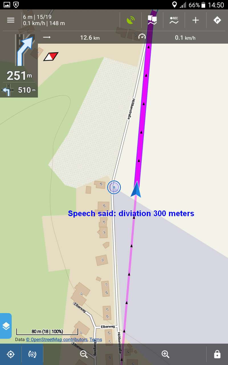 I see, the problem is in the difference between real and announced deviation. Could you please share the imported route? I'll try to simulate the problem.