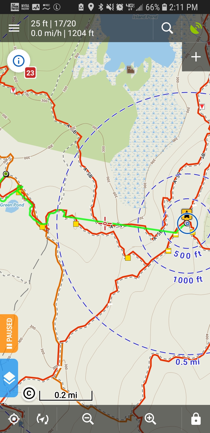Here's a screenshot... notice the straight green line, but I followed the trails....