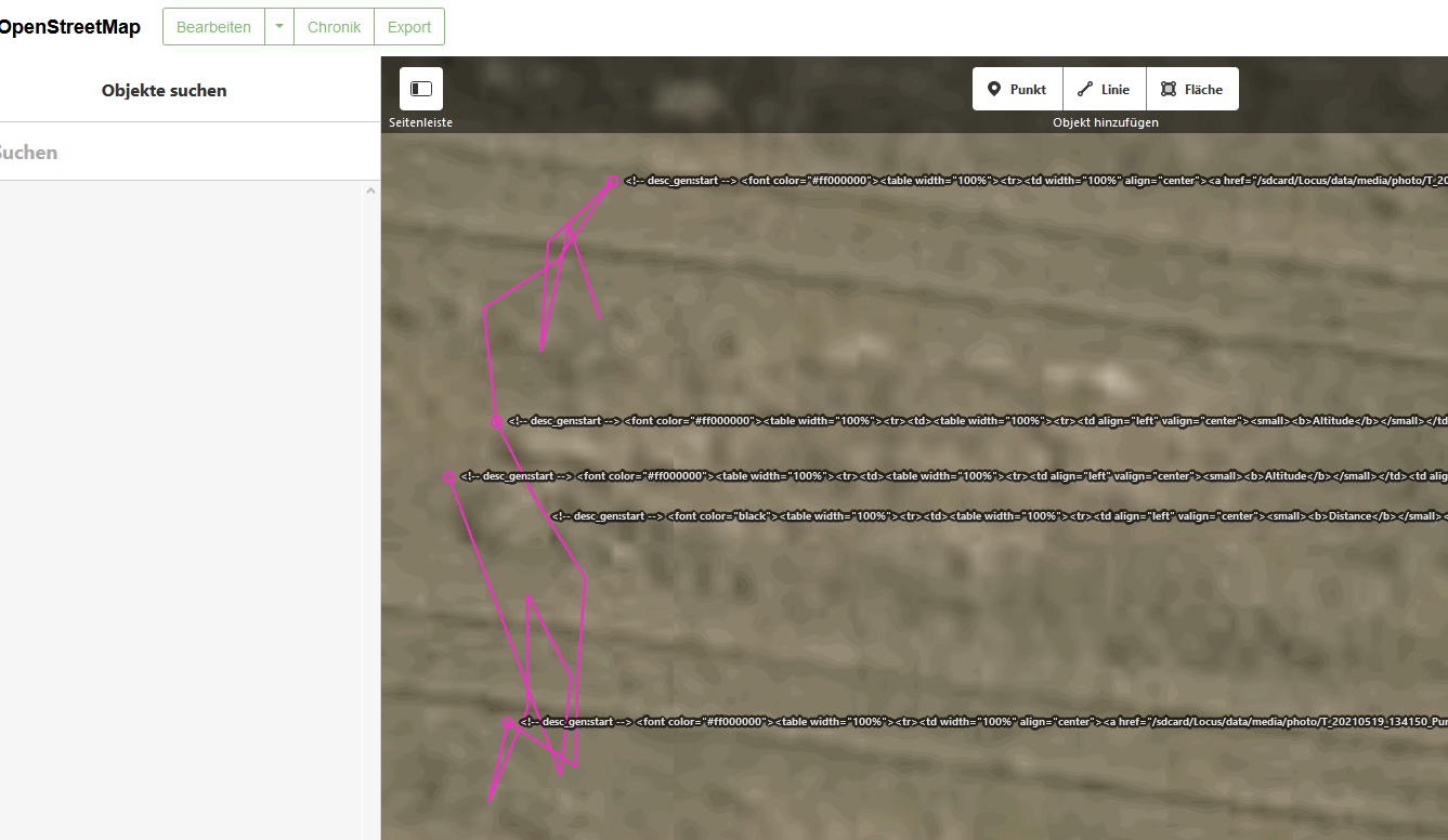 Since then Images are NOT being exported anymore if "Incl. descriptions & attachments" is UNCHECKED. If I check this option, then images are exported - but also some (for me) unnecessary HTML-formated descriptions are exported. And these descritions look very annoying in OSM-Editors and are covering important OSM objects below them (I attached 2 screenshots of OSM-Editors JOSM and iD, and also how it looked before)