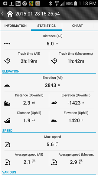 2) import exported GPX/KMl to any of many web tools that may generate such statistics