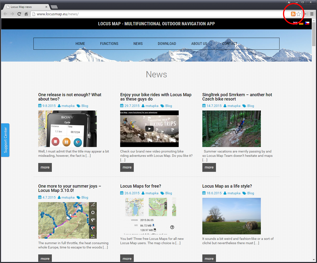 just since new 3.11.x version is integrated RSS reader directly in Locus main menu! For this reader I use link: