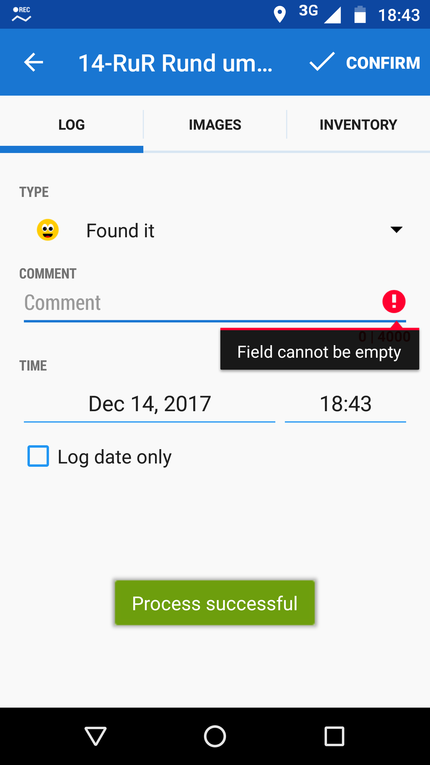 "Field cannot be empty" - when you log a cache