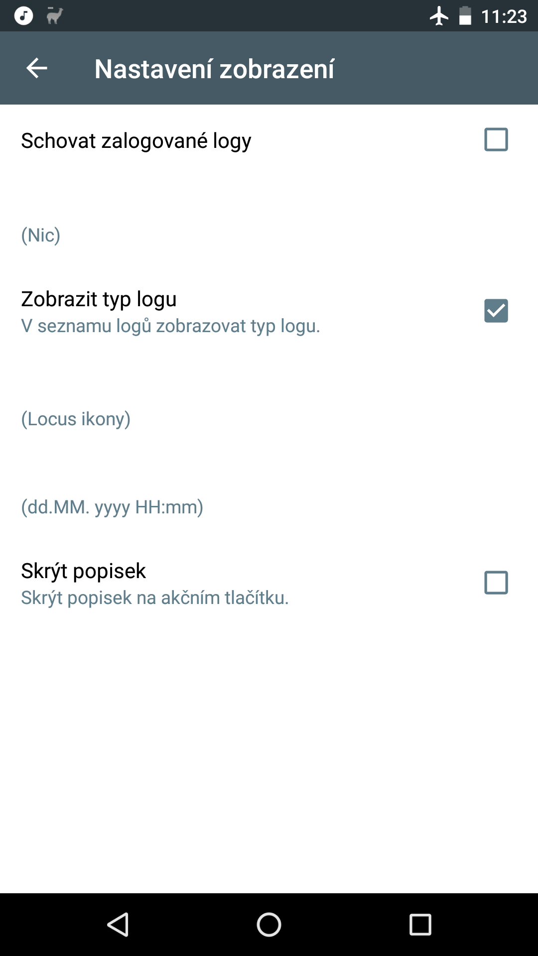 Just found, that in FieldNotes 1.4.6.1, labels in settings are not rendered. See attached screenshots.