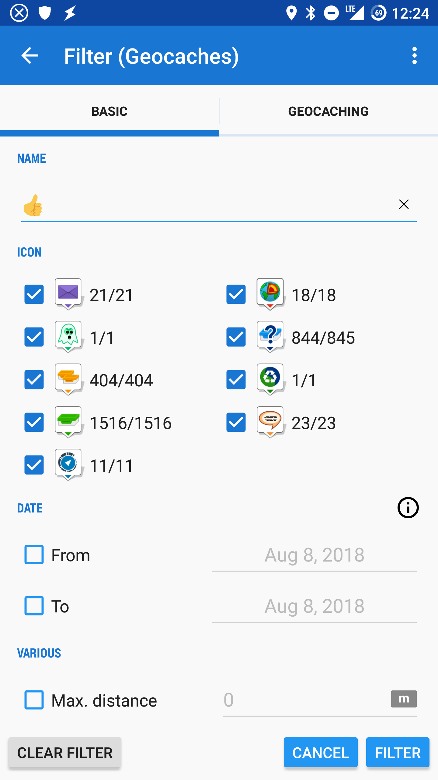 Now I would like to filter for this emoji and entered it in the filter dialog, but this results in an empty filter. If I filter for 1f44d, this cache is found. But who can remember codes of emojis?