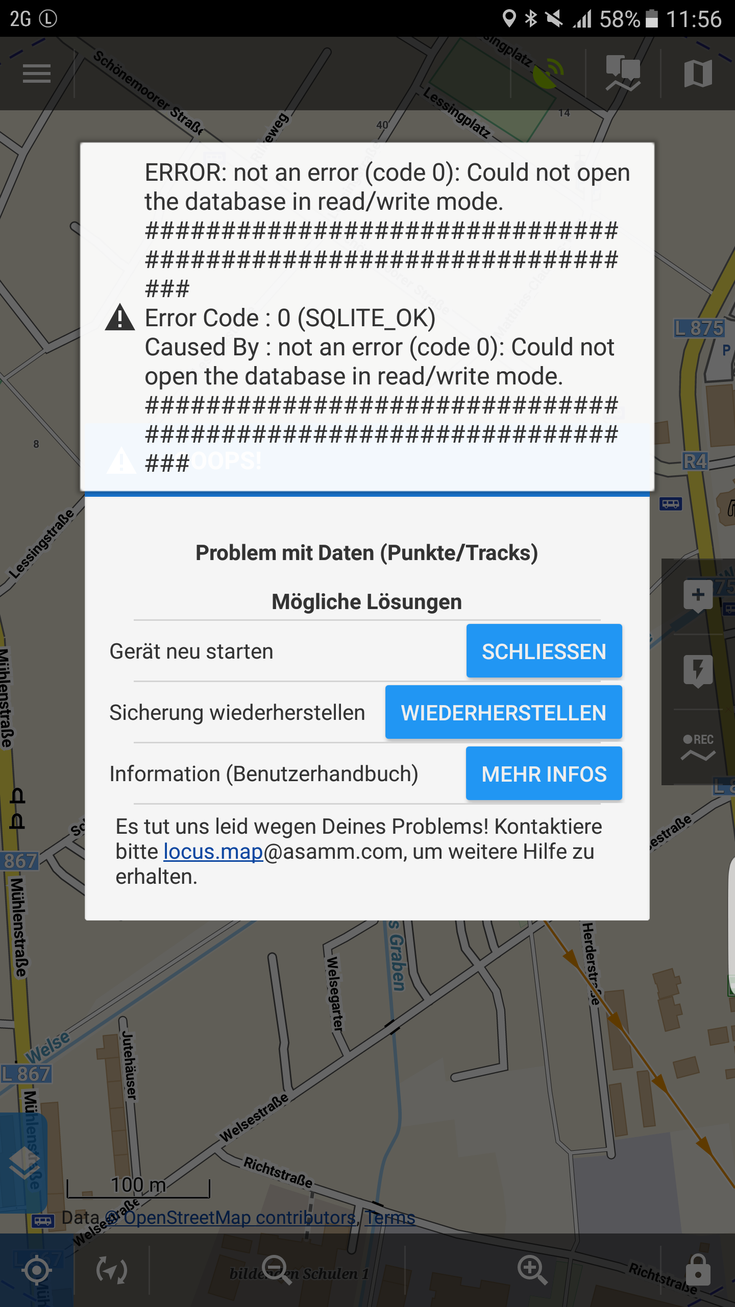 so here locus show me a message, that's something wrong on my way points etc and i should restart my phone.