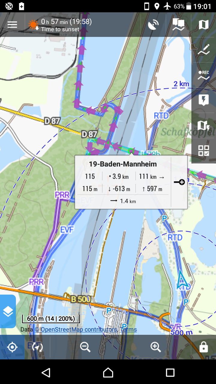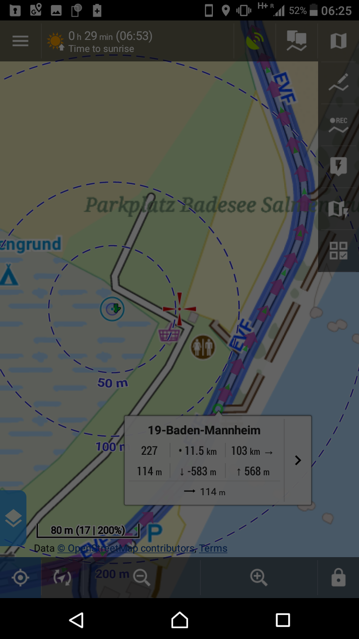 After this time the name of the track ist displayed and right of this the "+" symbol. This means normally: add this point to a new track.