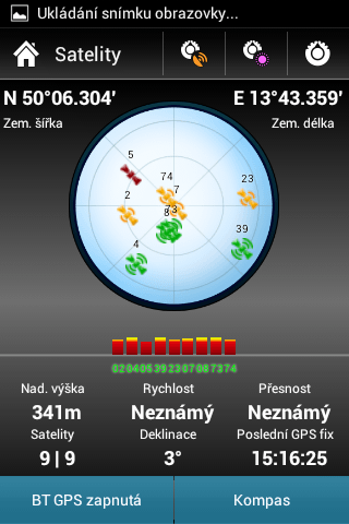 Když jsem zařízení připojil atd... zapl jsem Locus Pro a vše pozapínal a nastavil tak sice ukazuje pozici kde se nacházím ale velmi nepřesně... například 10 metrů vedle... když si otevřu okno s kompasem tak v kolonce přesnost mi rychle bliká NEZNÁMÝ a 0,8m což je chyba... stál jsem u keše která byla tři metry ode mě a locus ukazoval 18metrů... rychlost také neukazuje...