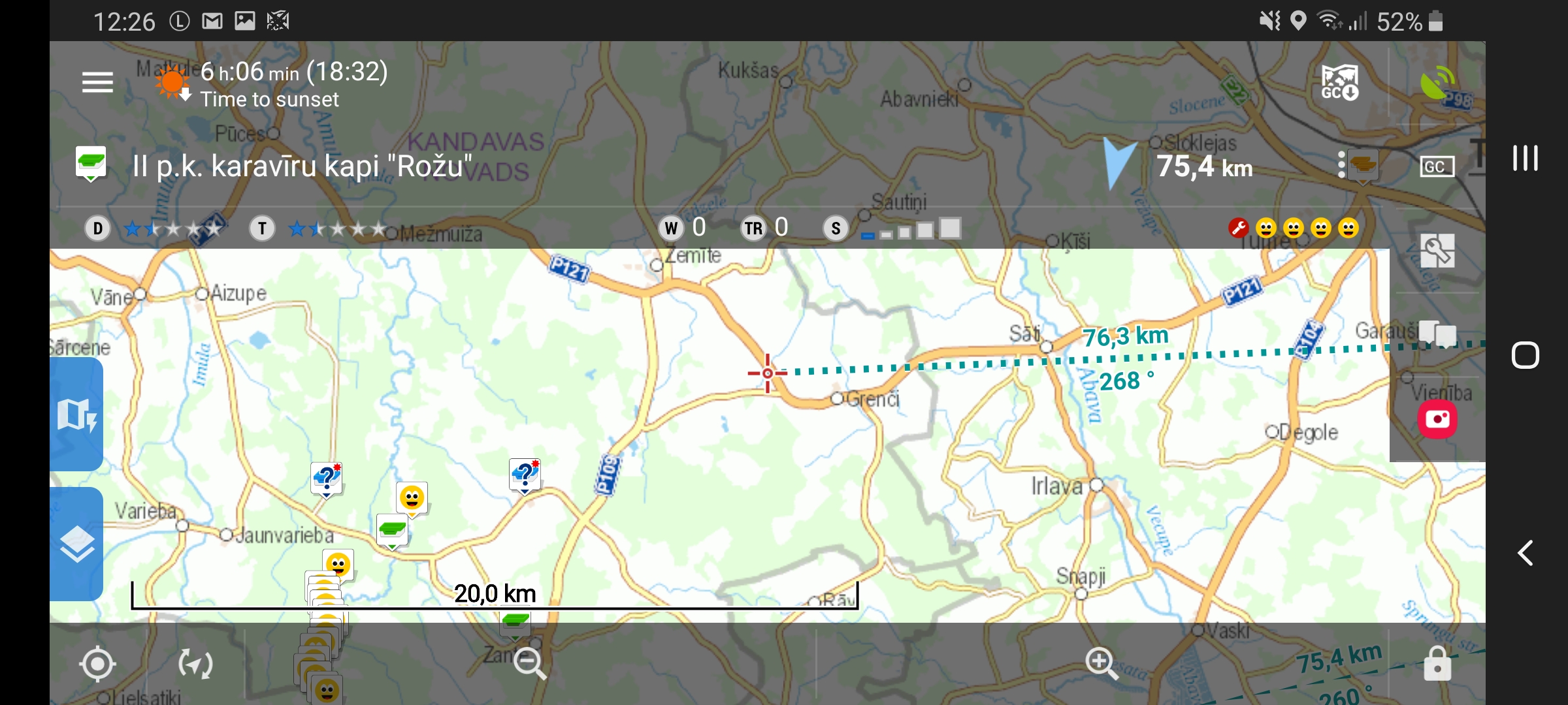 Geocache information (terrain, size etc.) not fully dispayed in guidance bar.