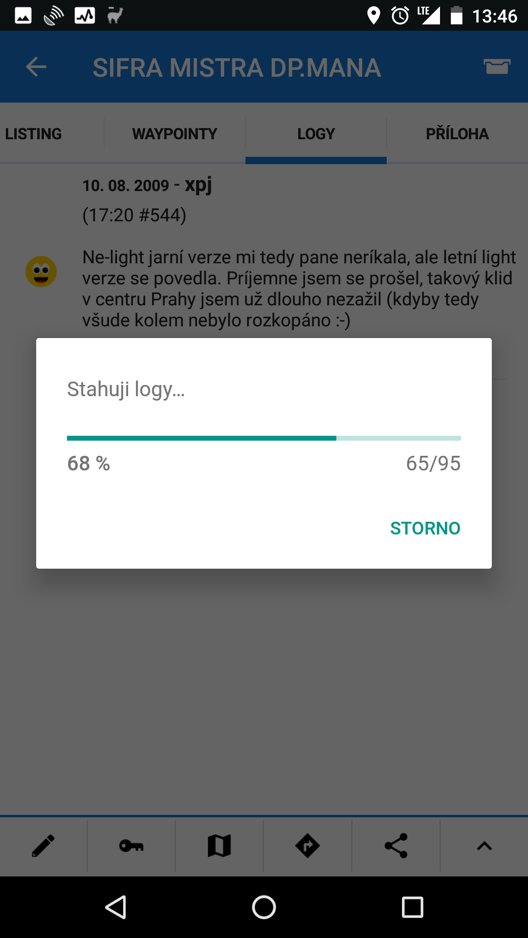 I'm experiencing trouble in Logs tab in Geocache detail. When I tried to "Download logs," there is popup informing me about logs download progress but finally, no log is shown.