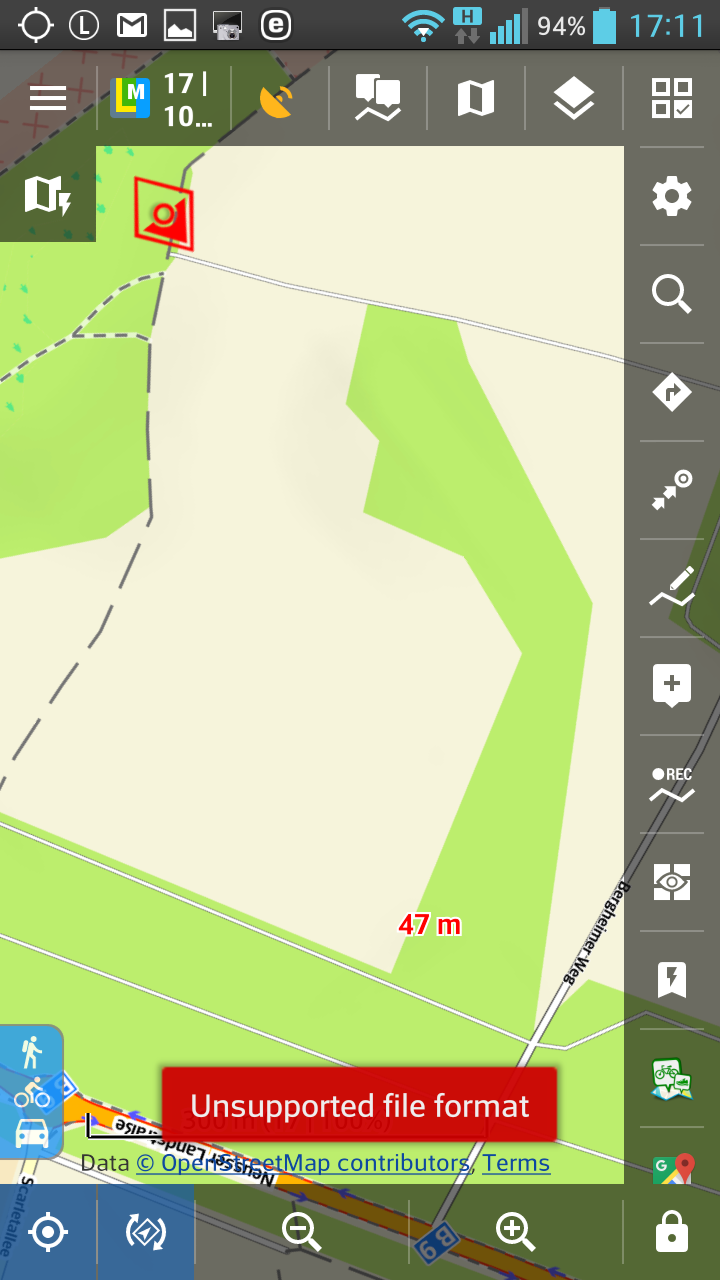 BUT: opening the e-mail with Locus gives you the error message "Unsupported file format" (screenshot 6.). Implementing this feature would be a great step forward for Locus!