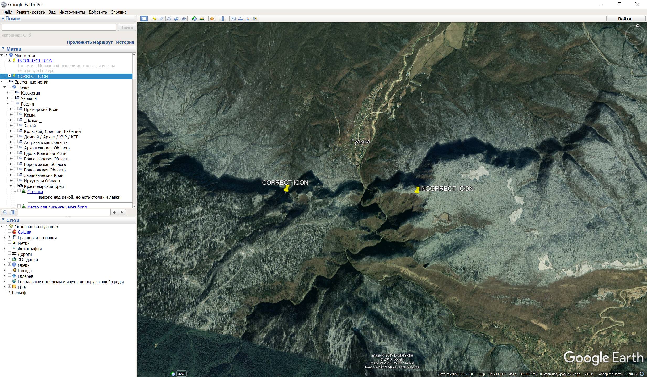 I opened it now and it shows Google Earth icons. Last time it didn't - I swear to god.